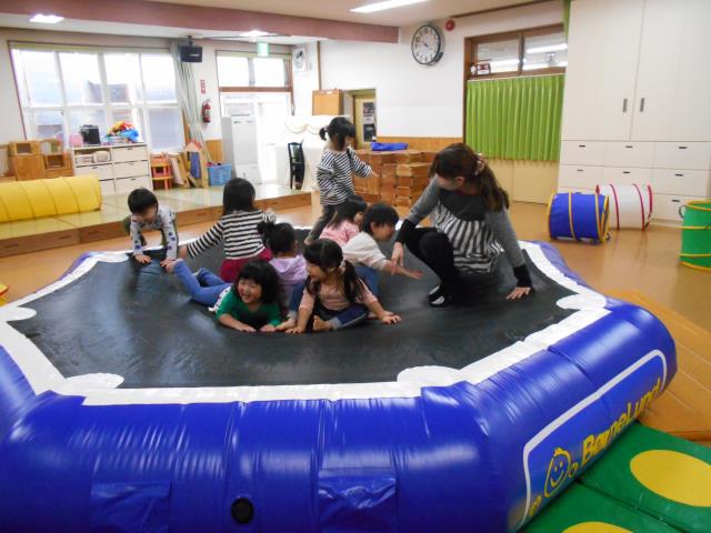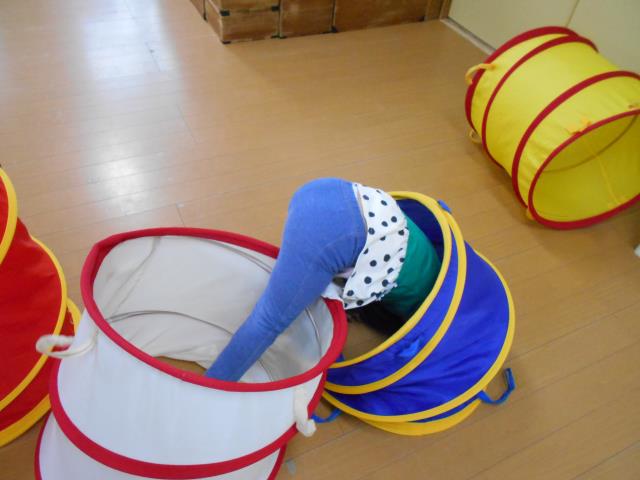 たんぽぽさん、お遊戯室でトンネルやトランポリン、ファンクショントンネルで思いっきり遊びました!
