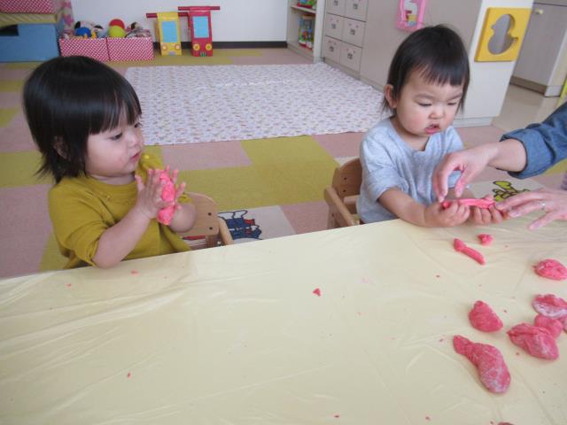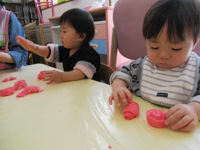 感触にも少しずつ慣れ、のばしたりこねたりして楽しみましたよ。