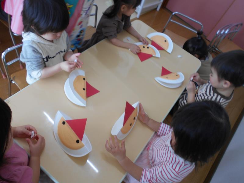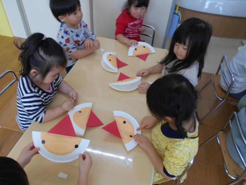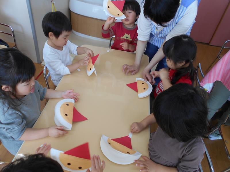可愛いサンタさんが完成すると、お友達と見せ合い嬉しそうにしていましたよ!