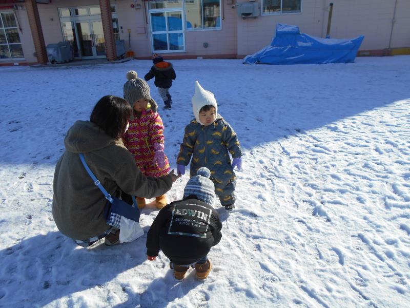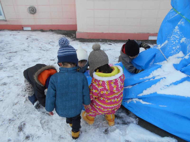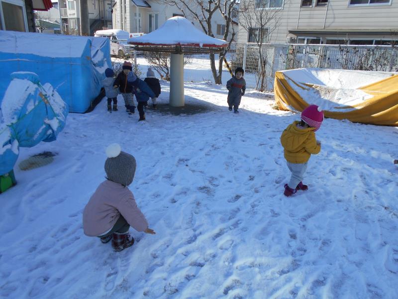 雪がさらりと積もっていて、ブルーシートの上の雪を落としてくれたり、先生と雪をかけ合って楽しみましたよ!