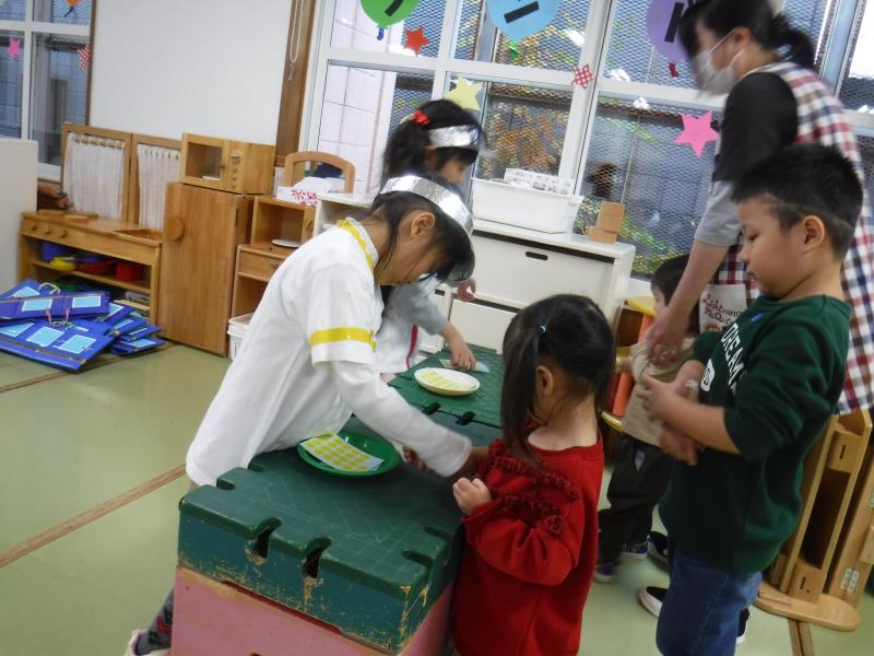 お仕事も遊びも経験できて、園全体で楽しいごっこあそびができました♪