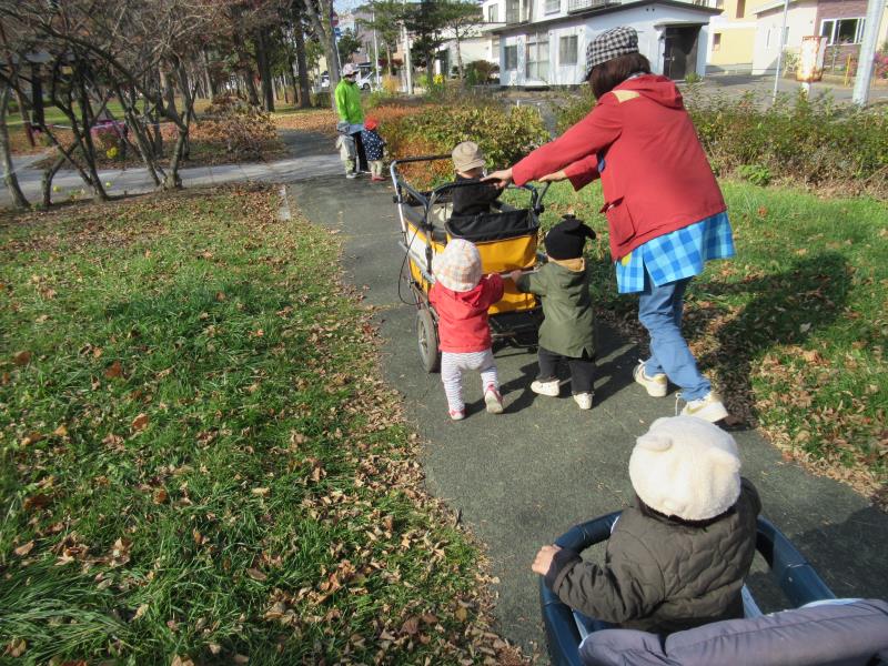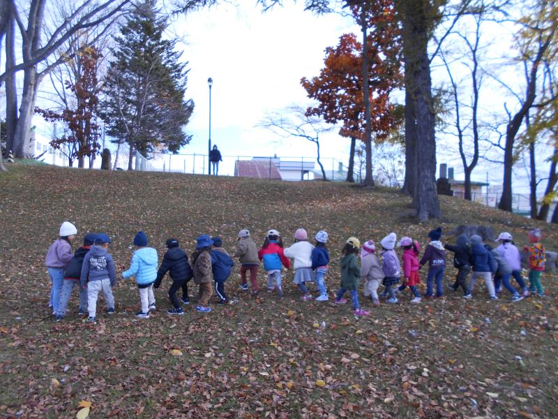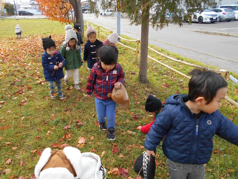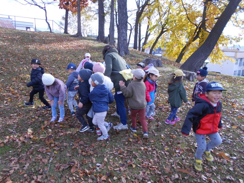 みんなで坂を上って下りて体も元気に動かし、落ち葉拾いもたくさんしてくれました♪