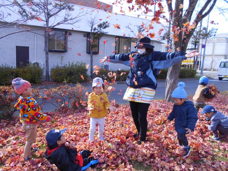 落ち葉シャワーも楽しそうですね。