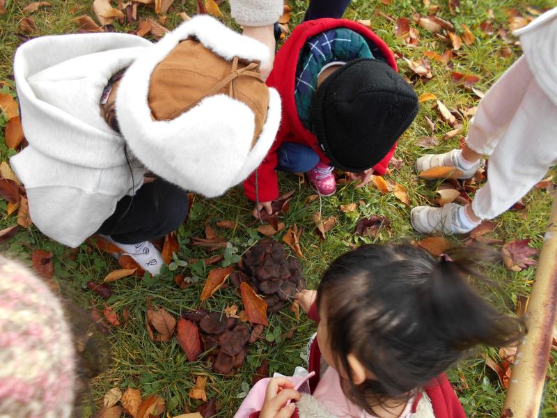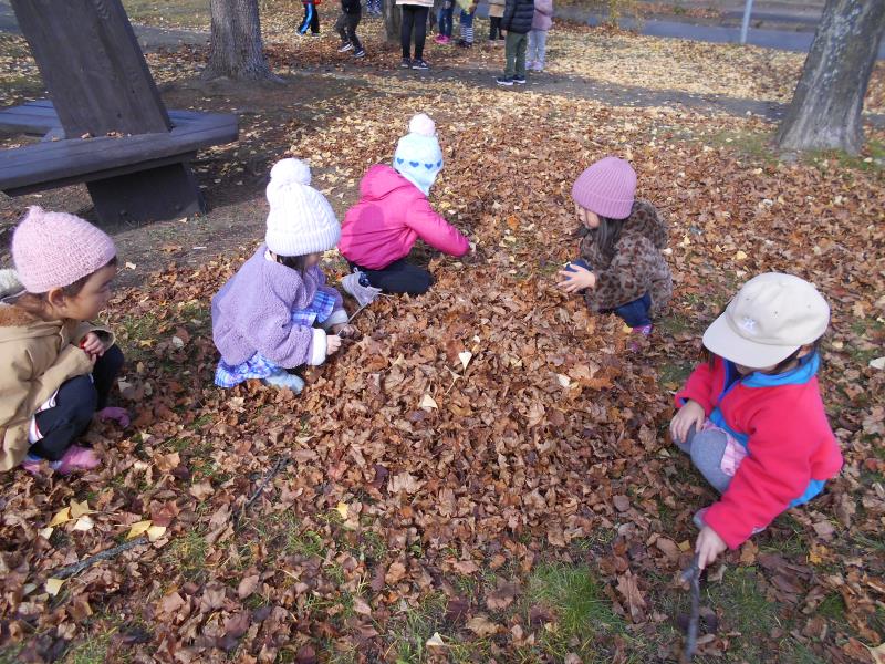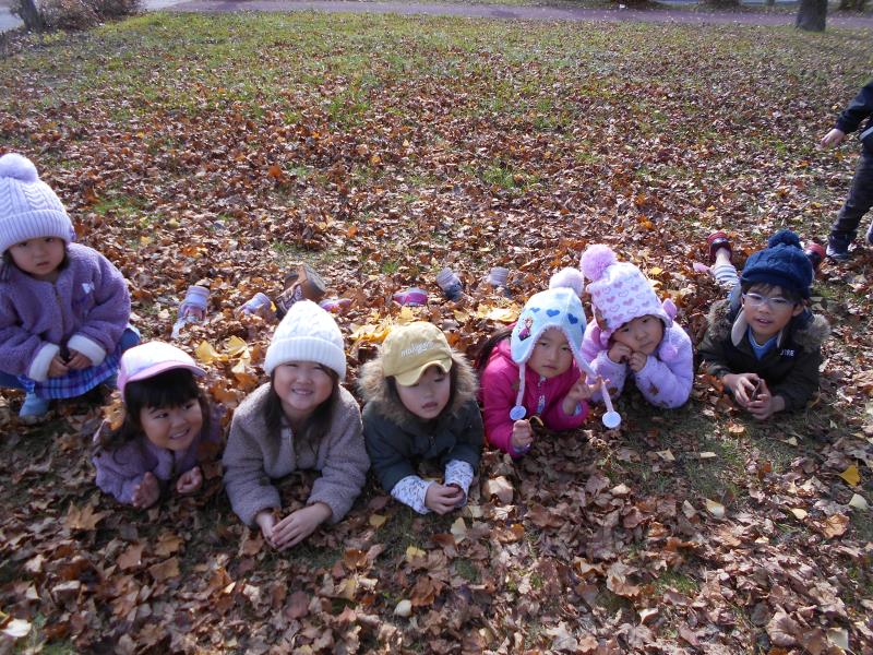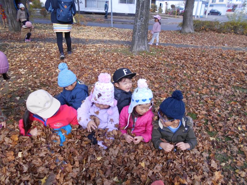 やきいもごっこをしてみたり、落ち葉のお布団をかけて寝転んだり…秋の自然にふれて、今しか経験できない遊びを満喫してきたさくらさんでした!