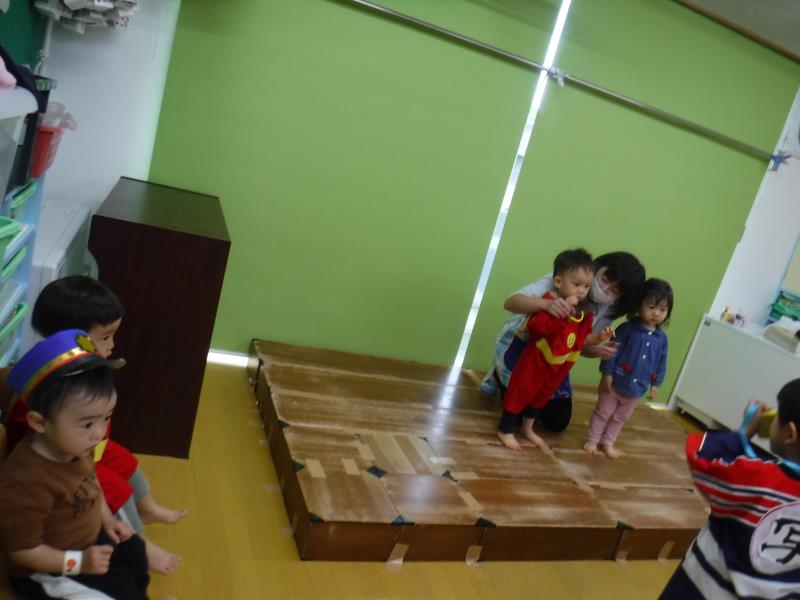 リズム遊びの後は、猫バスに乗ったり、JPクッションで遊んだりと、一緒に楽しく過ごしました♪
