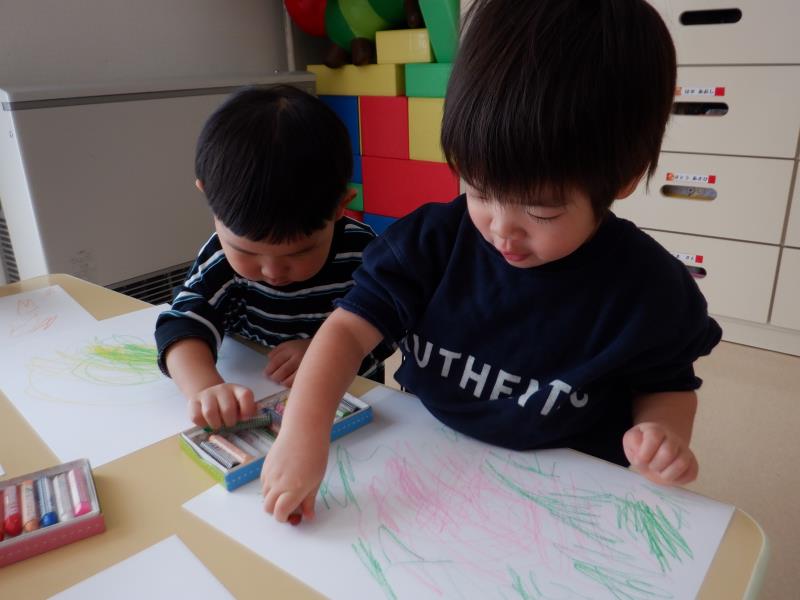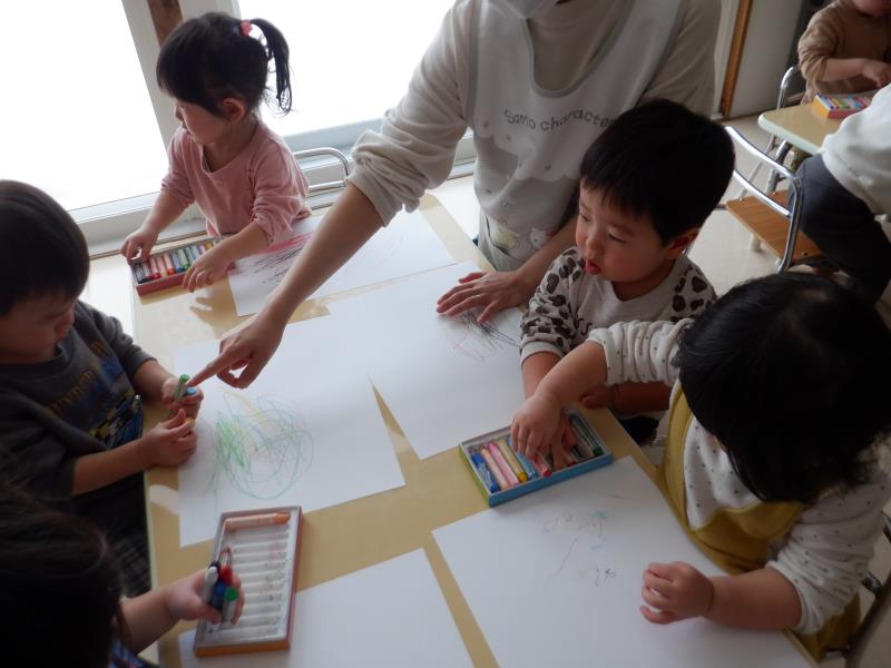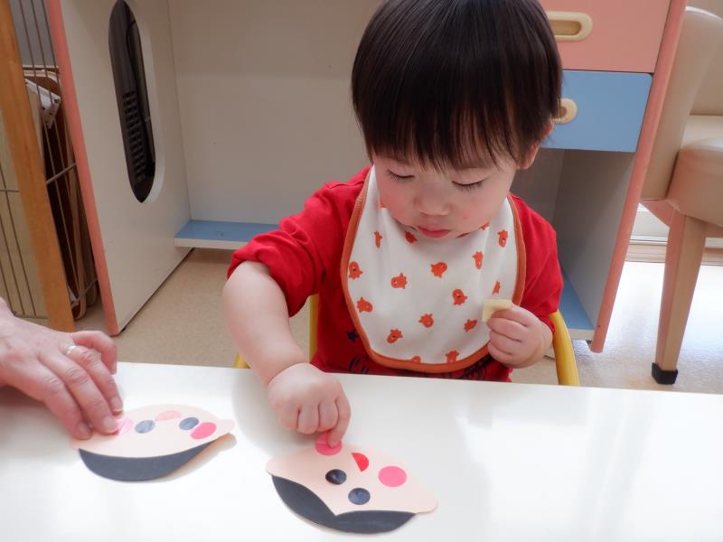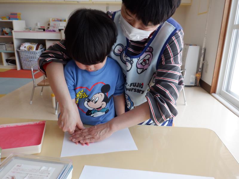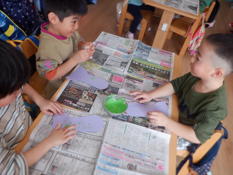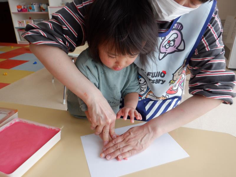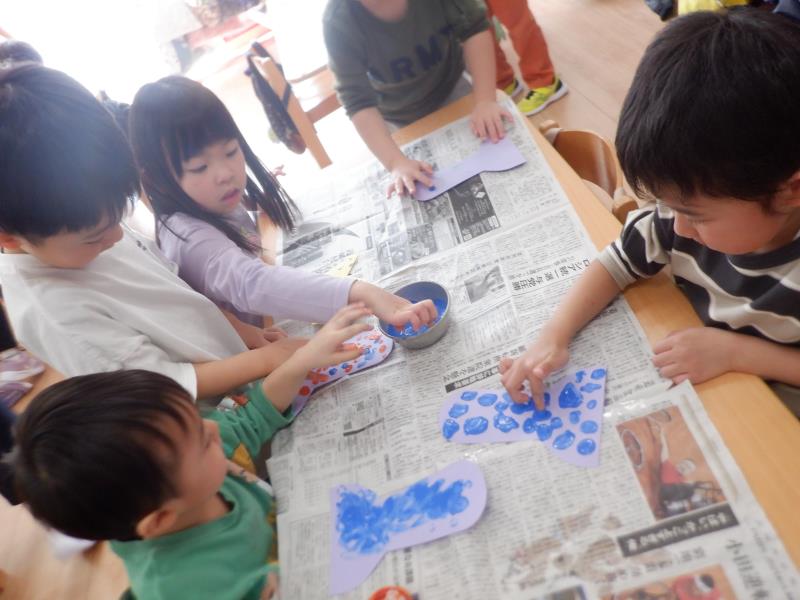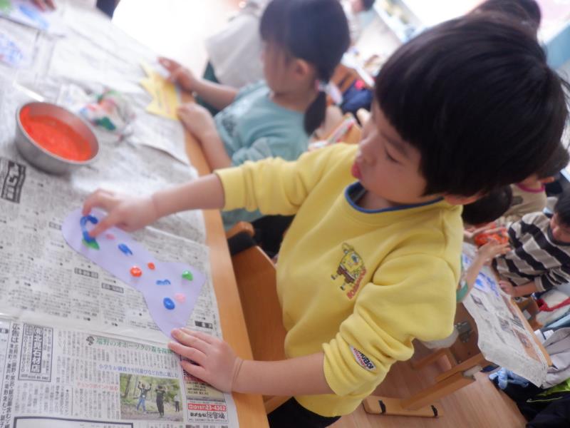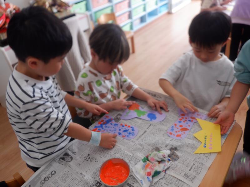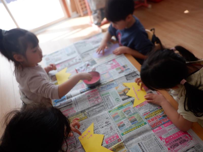 ゆびに、えのぐをつけて、てんてんてん・・・。