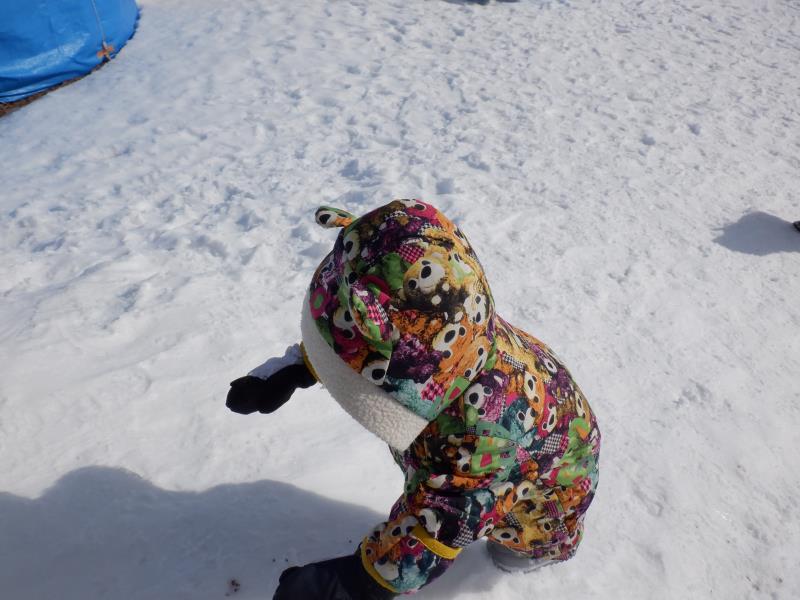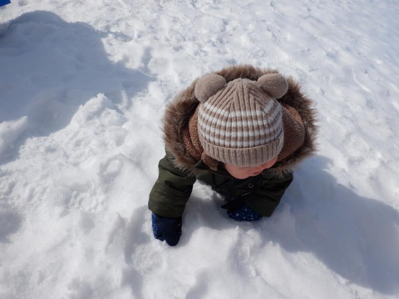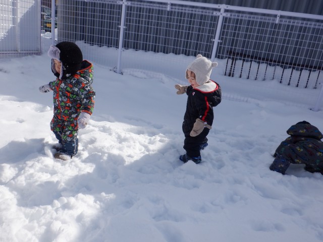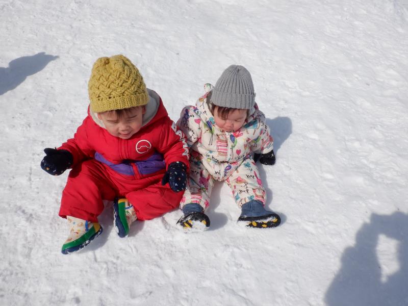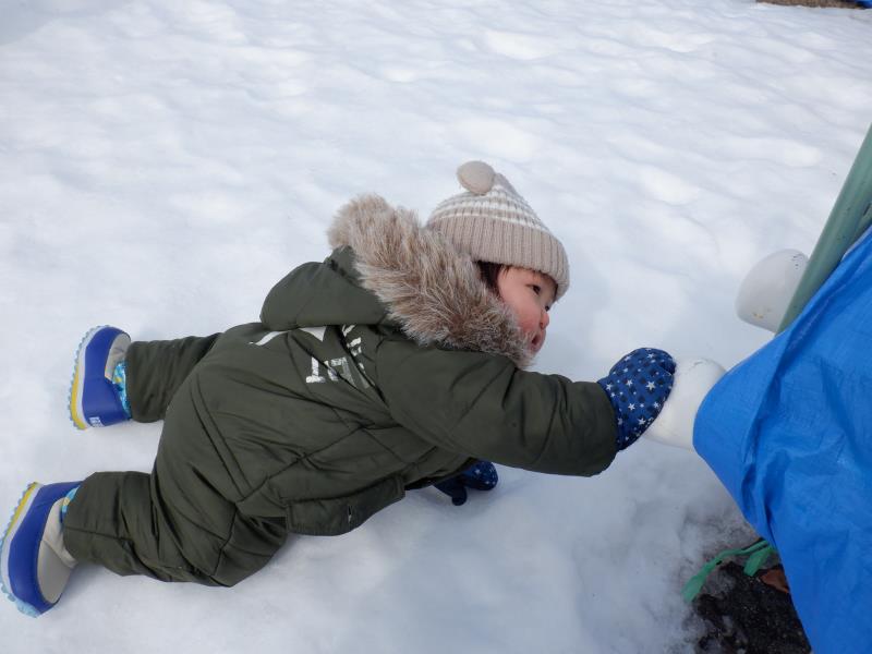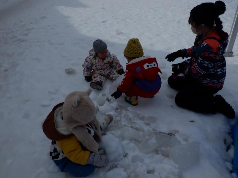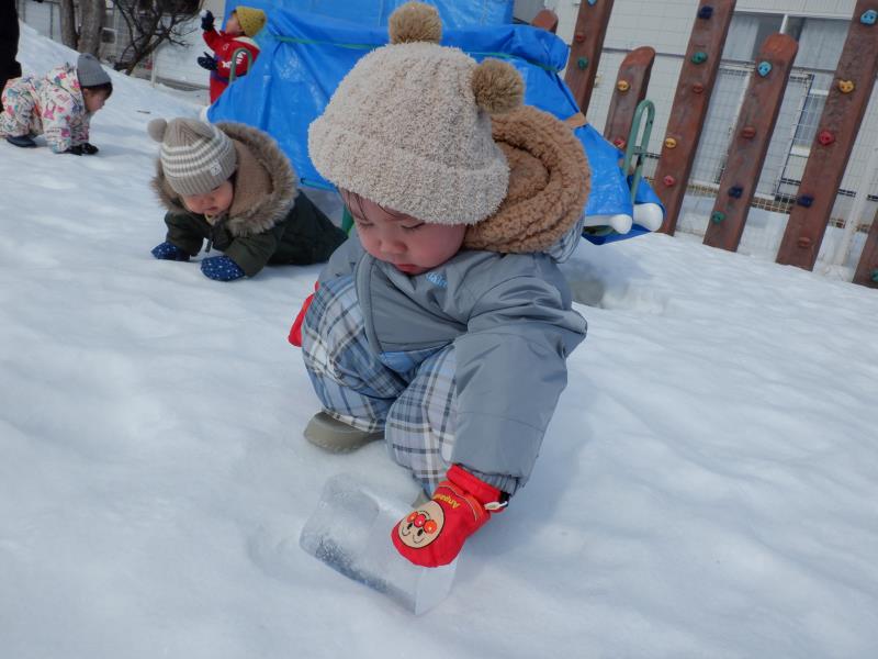 今日のももさん、園庭にあった四角い大きい氷に興味津々。