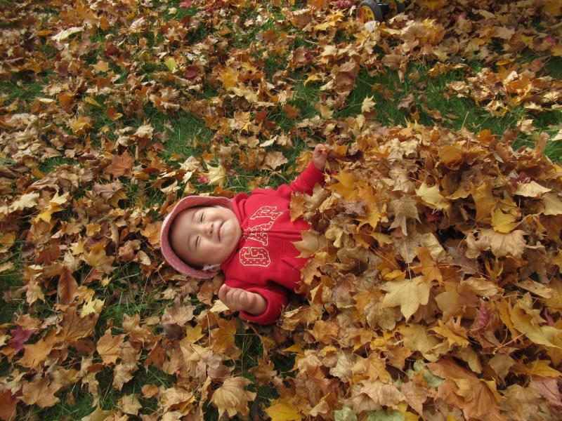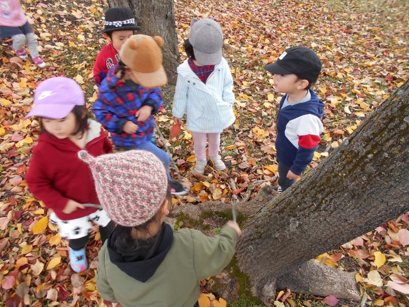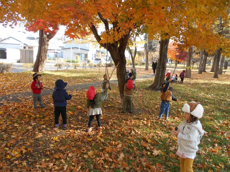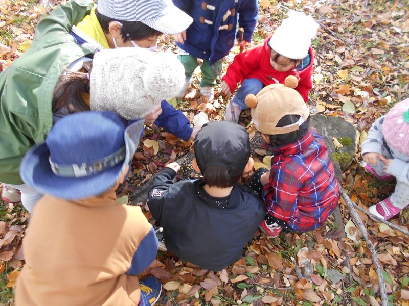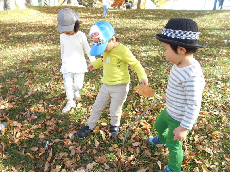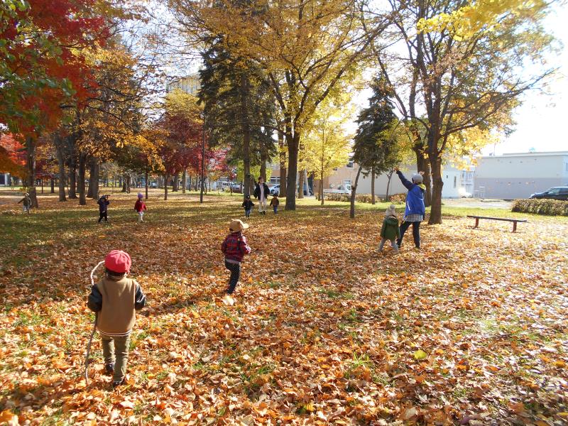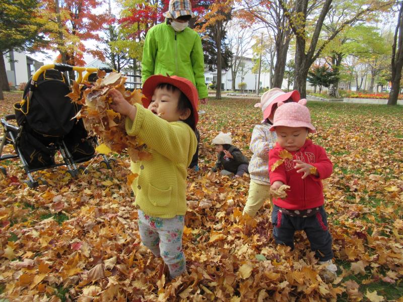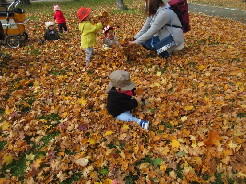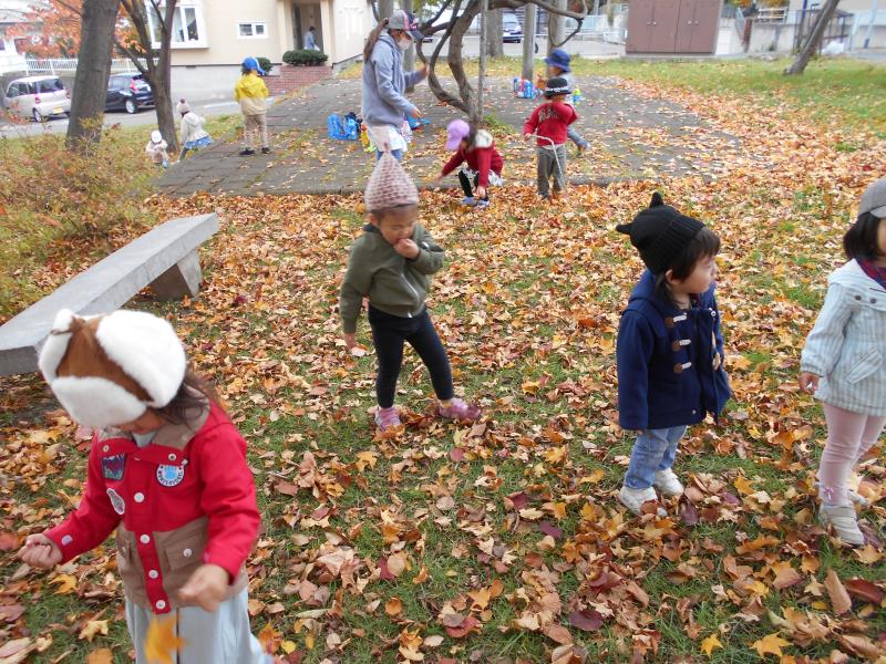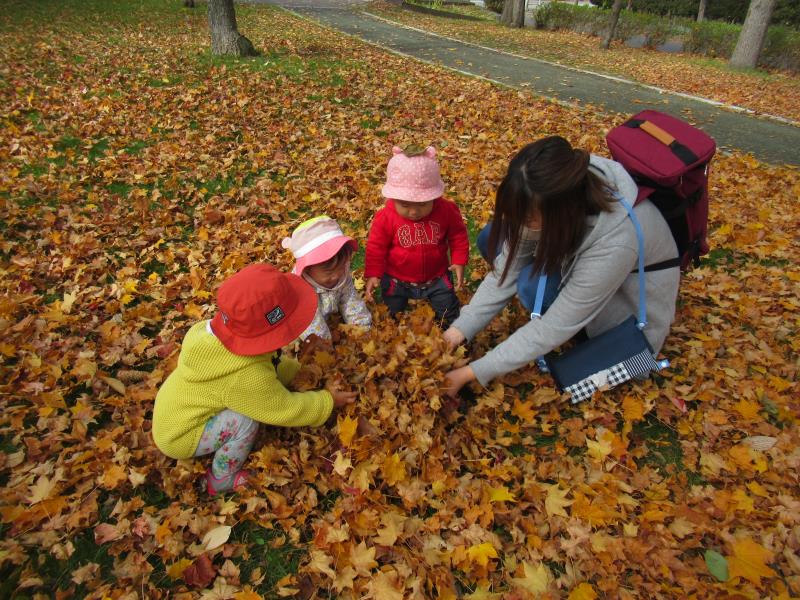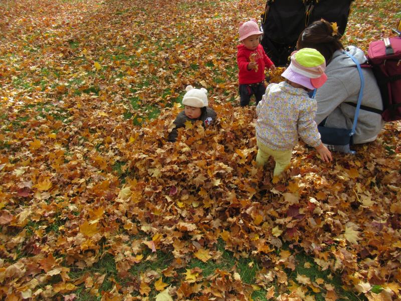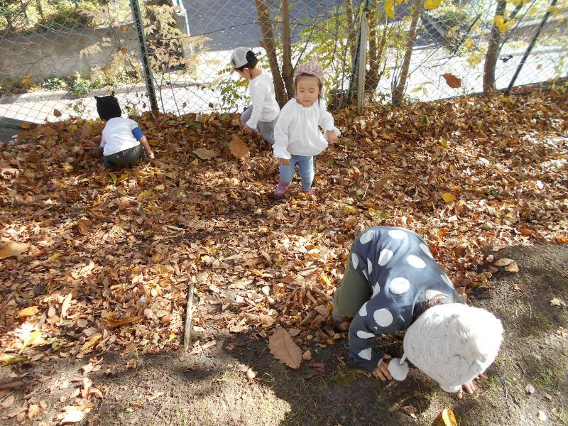 落ち葉シャワーをしたり、落ち葉のお布団をかけたりと、秋の自然の中思い切り楽しんできました!