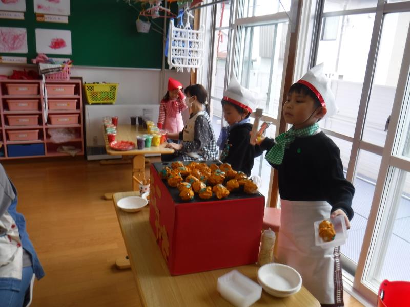 お仕事担当とお客さん役を半分ずつの時間で交代して行い、お仕事も遊びも楽しんでいましたよ。
