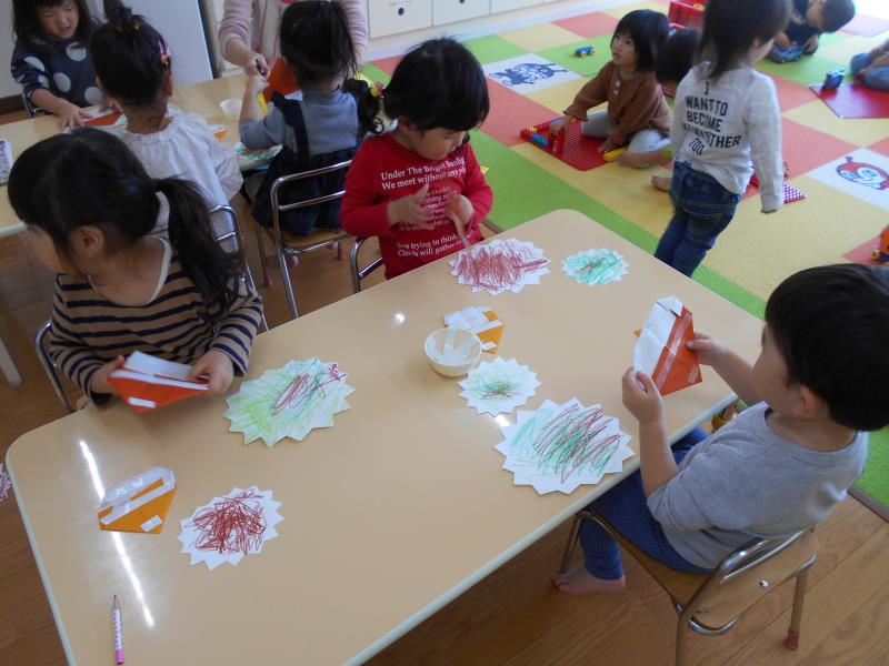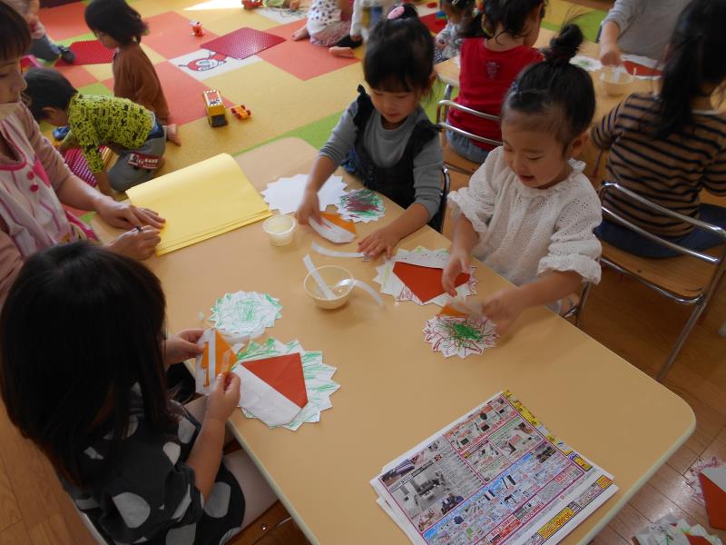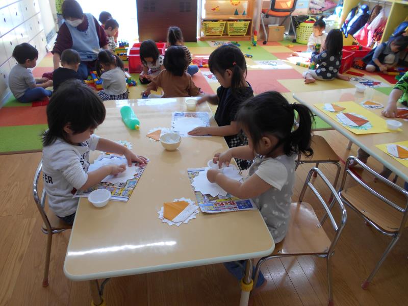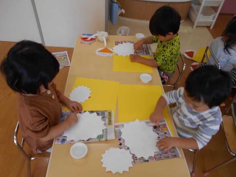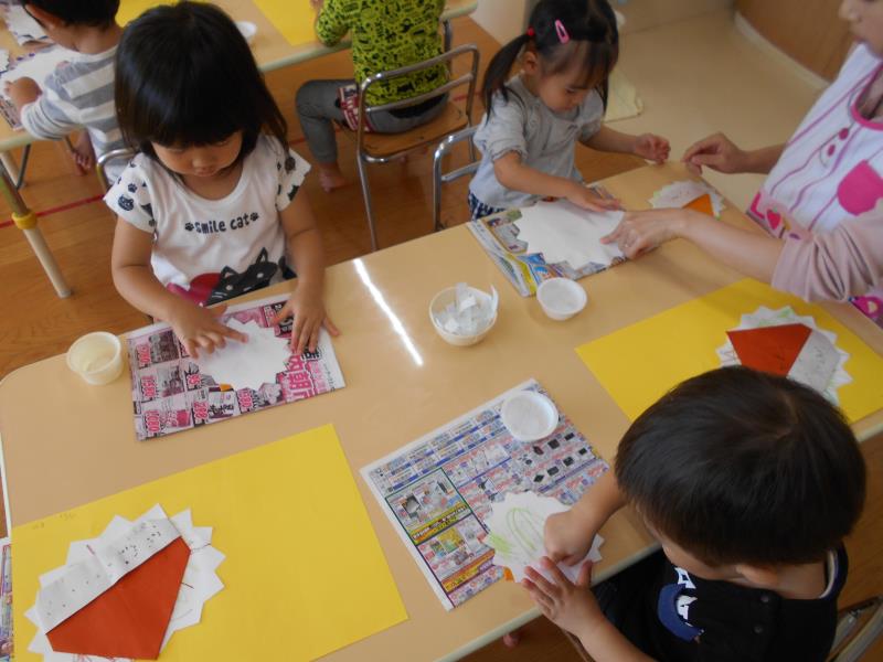 のり付けは、端まで塗ることを意識して指先を上手に使っていましたよ。