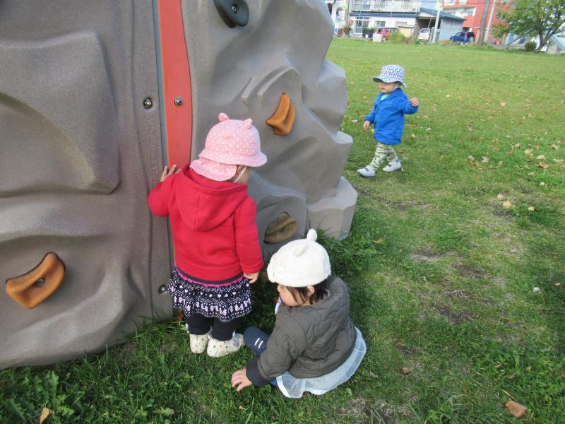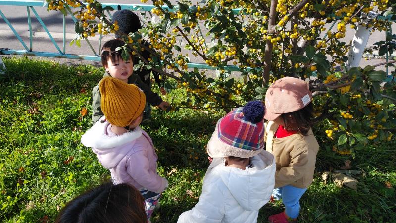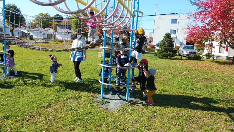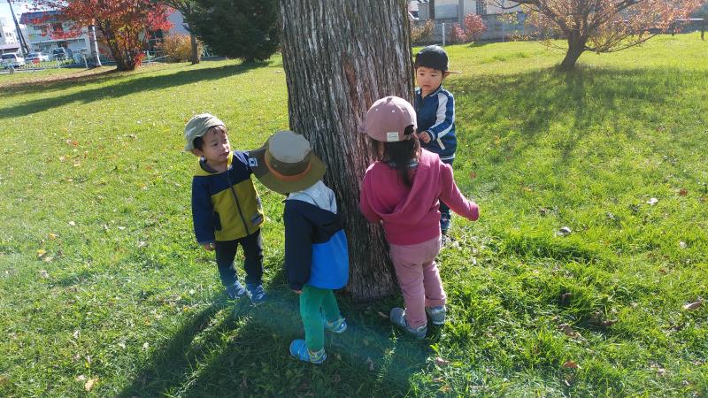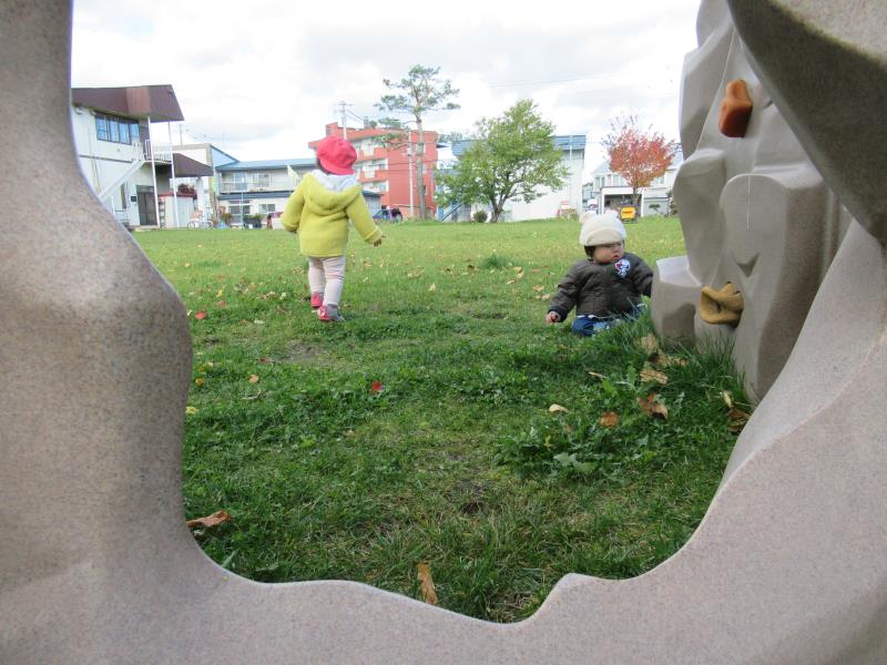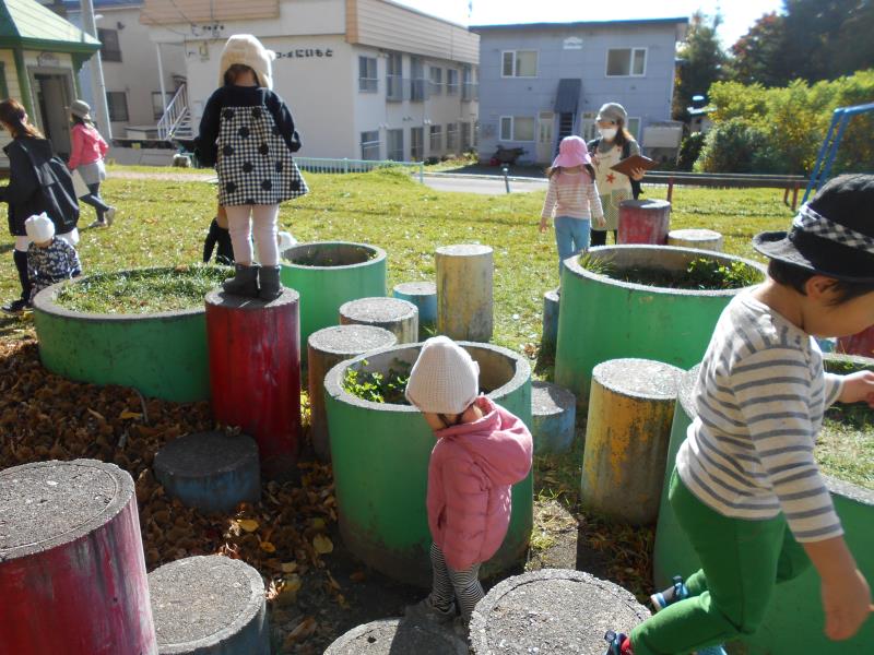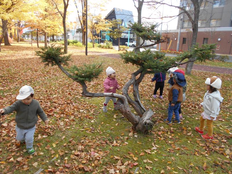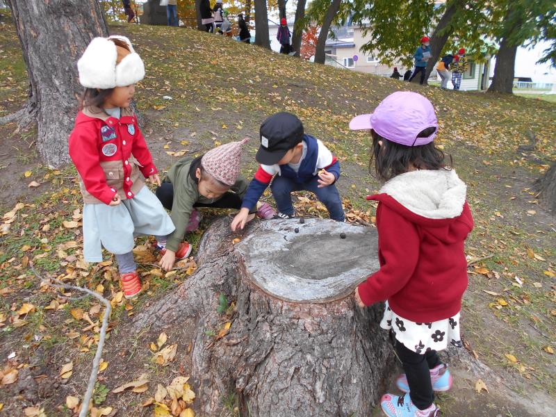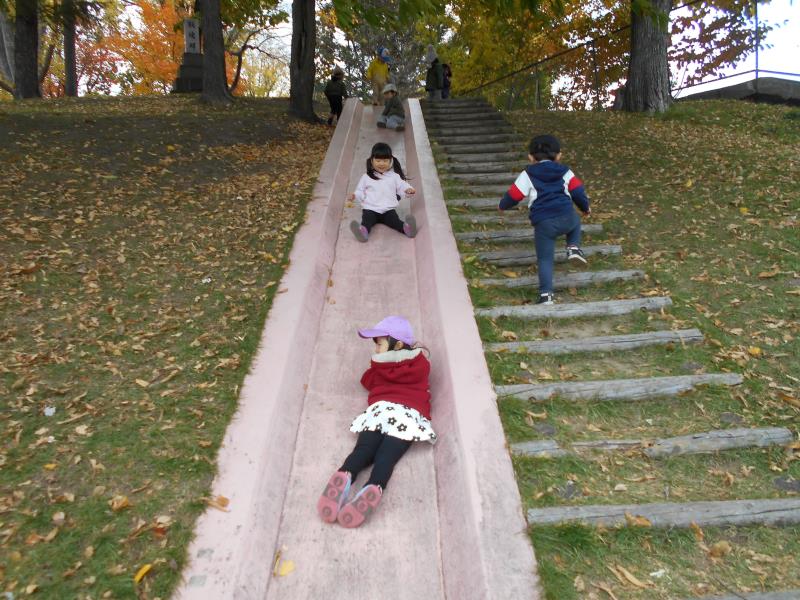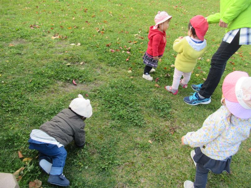 ピアソン公園では、滑り台で大はしゃぎしたり、昨日製作した栗も見つけることができました。