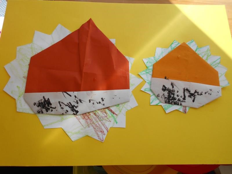 栗の裏に貼ってある両面テープをはがしてイガに貼り付け、最後は台紙にのり付けをして完成です!
