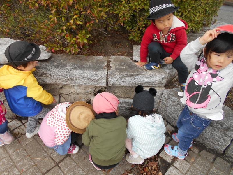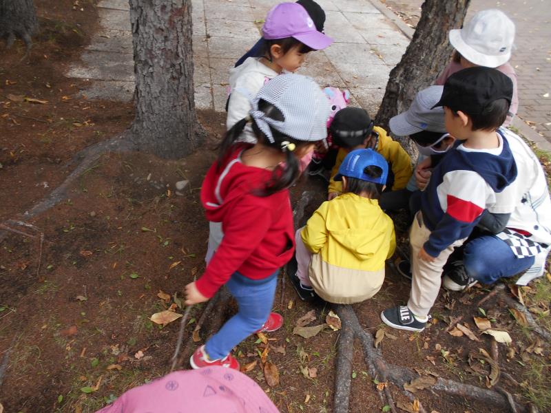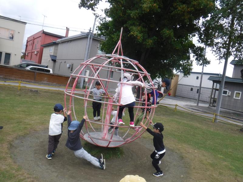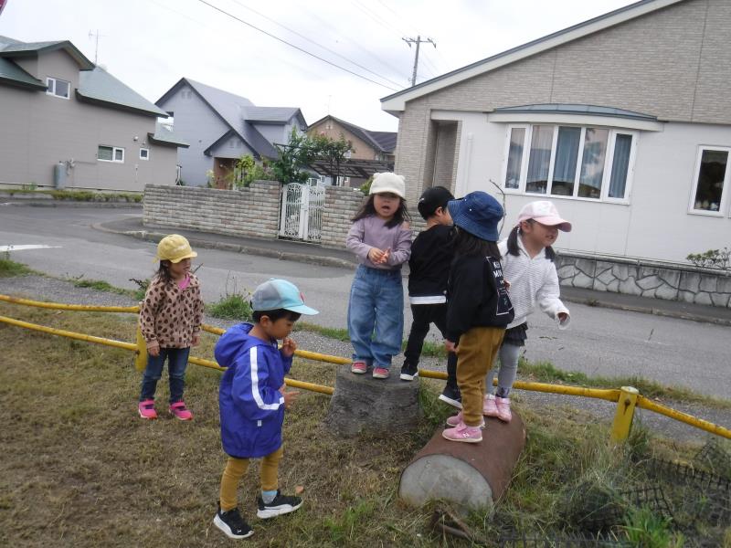 お相撲ごっこが始まったり、切り株の上に立ち、歌をうたったり…そうかと思えば、遊具の中に入って「うっきー!!」とお猿さんになったり!とっても愉快なさくらさんでした…。