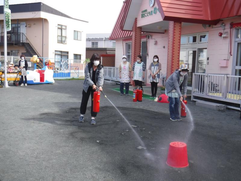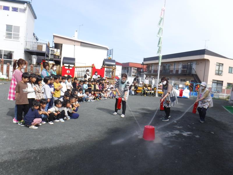 さくらさん・すみれさん・ゆりさんは、園内に戻ってから消火器の場所をクラスごとに探している姿も…。