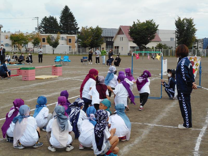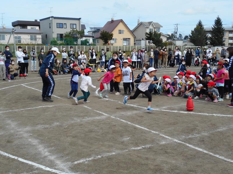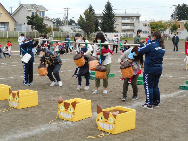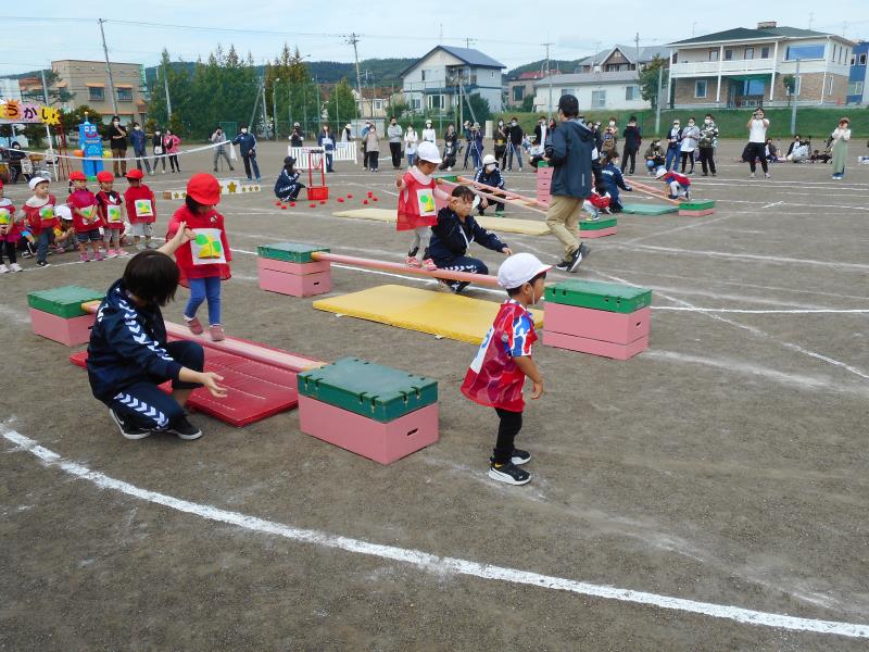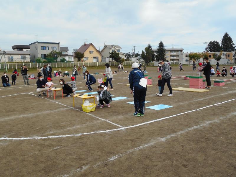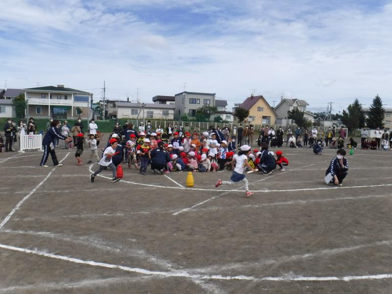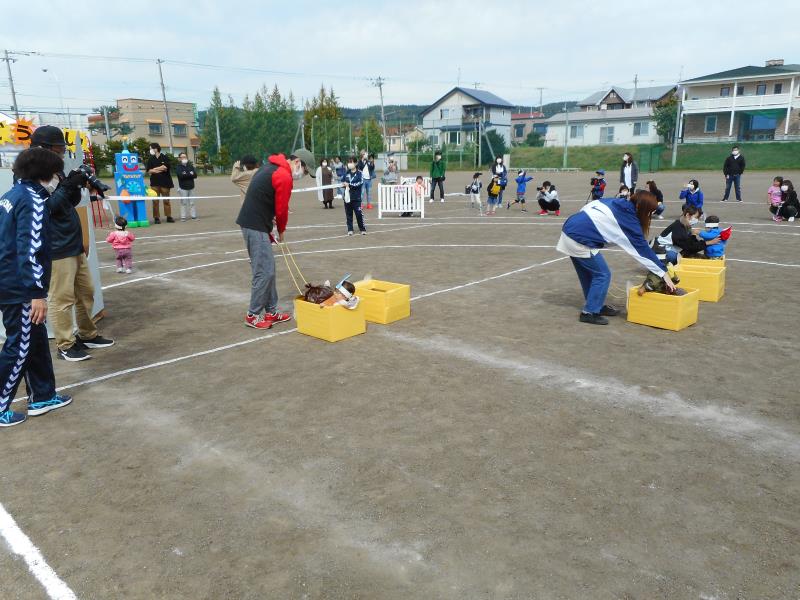 Ⅰ部はもも組・ちゅうりっぷ組・たんぽぽ組の親子競技でした。