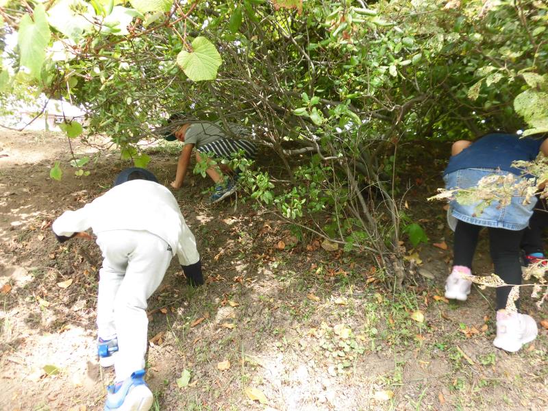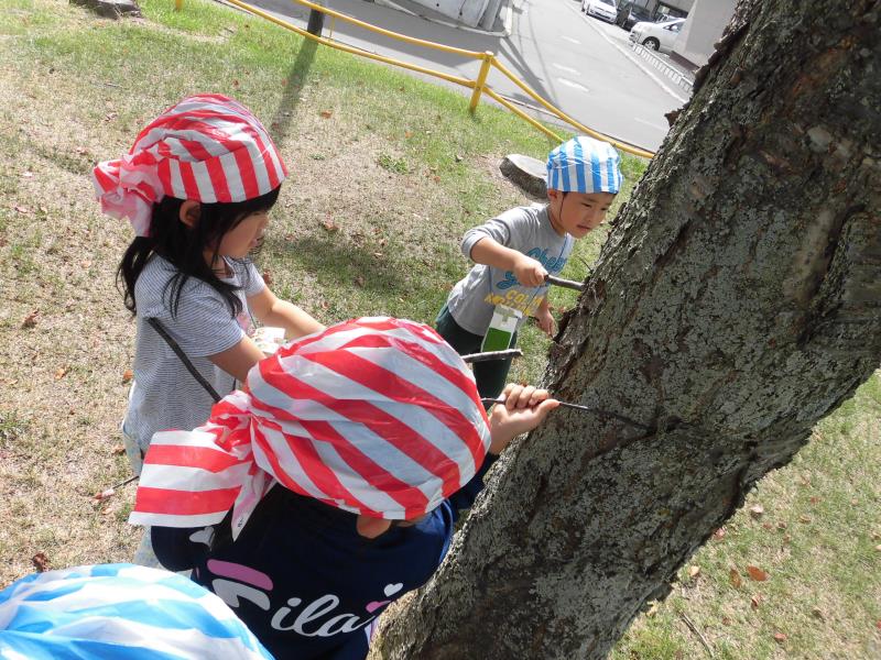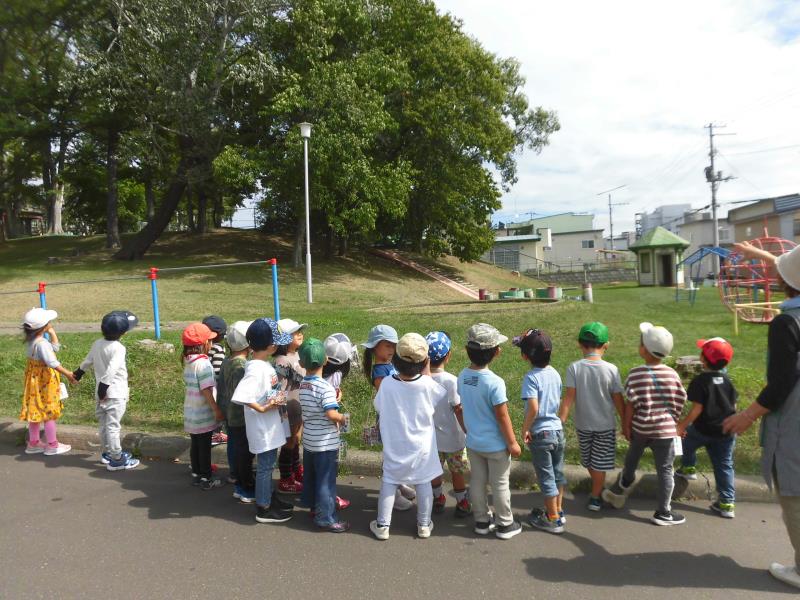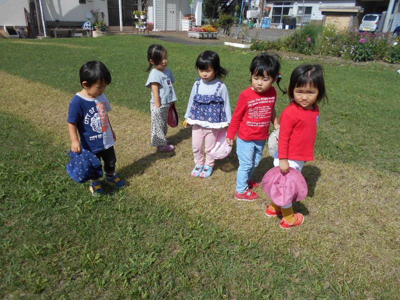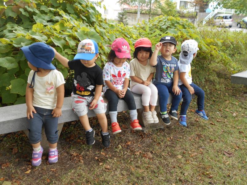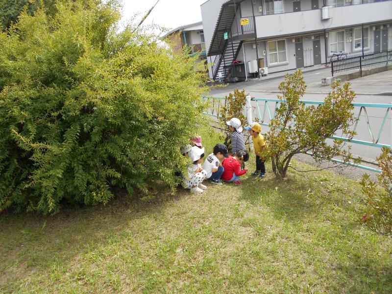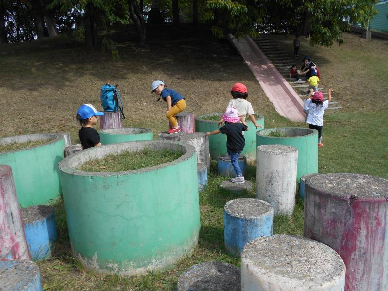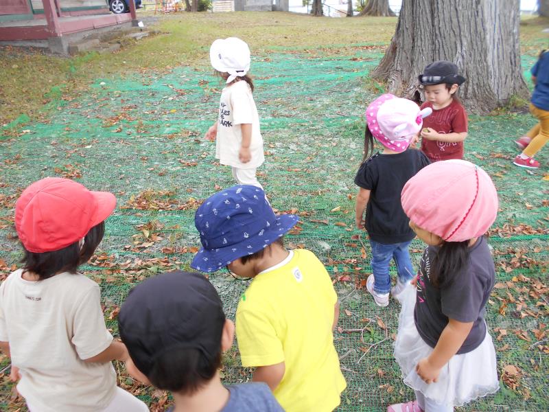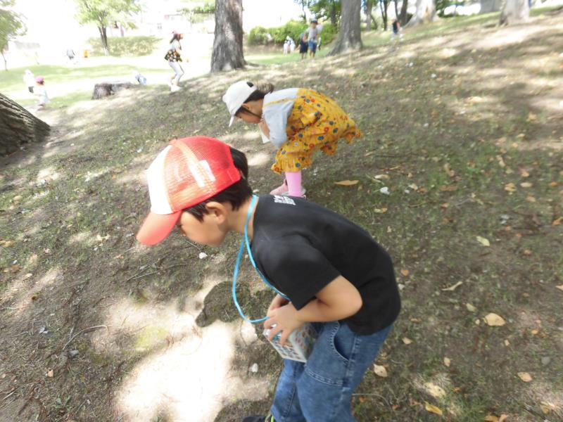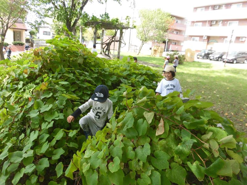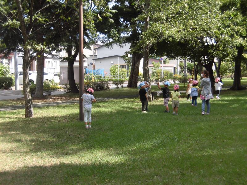 公園で実を見つけたり、木の穴を見つけてみんなで覗いてみたり…探索を楽しんでいましたよ。