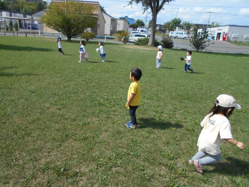 広い空間でのびのびと遊び、すっかり秋の気配でトンボも飛んでいました。