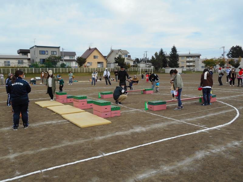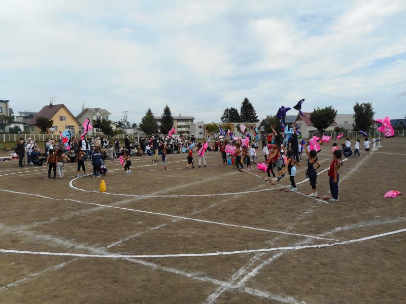 運動会は、予定通り北小グラウンドにて、Ⅰ部9時15分、Ⅱ部9時50分から行います。