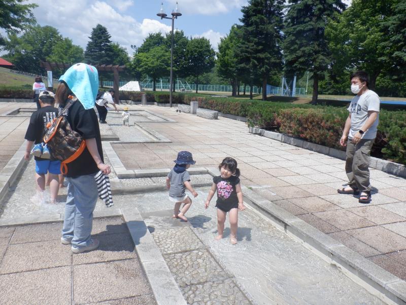 アスレチック遊具や、噴水での水遊び、丘の展望台など