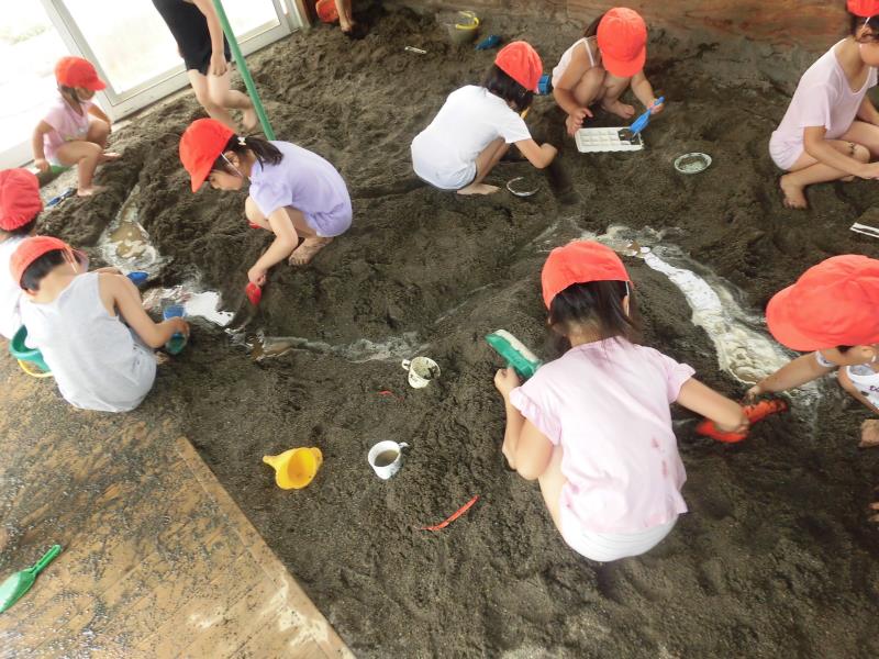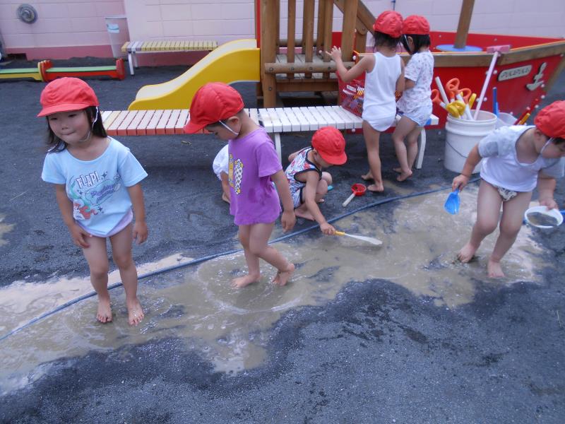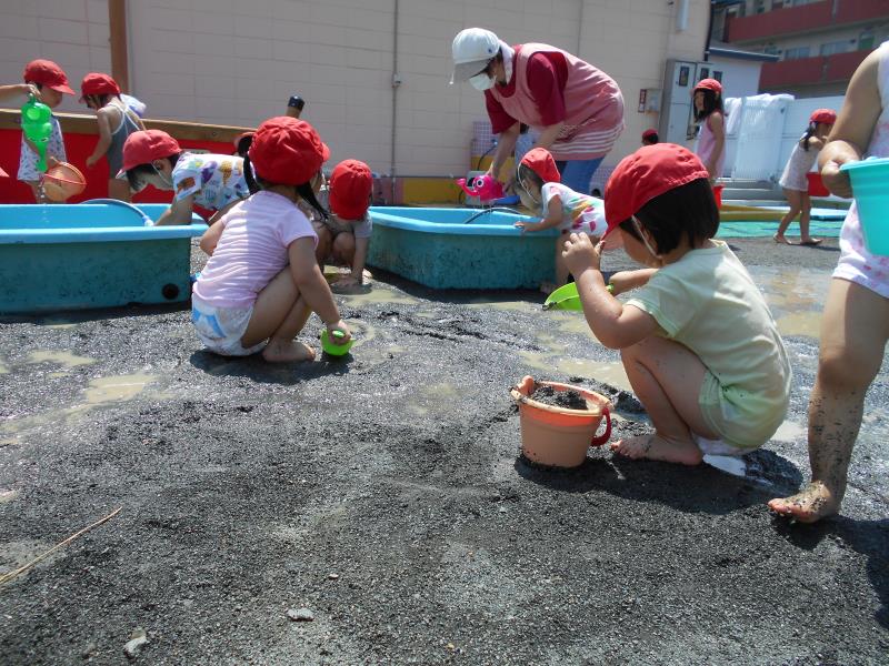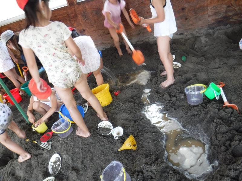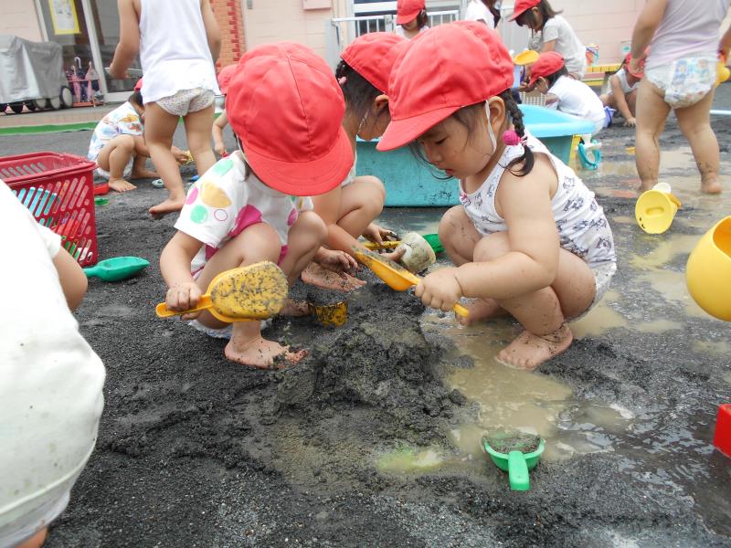 水と砂が混じったどろどろの感触を楽しんでいましたよ。