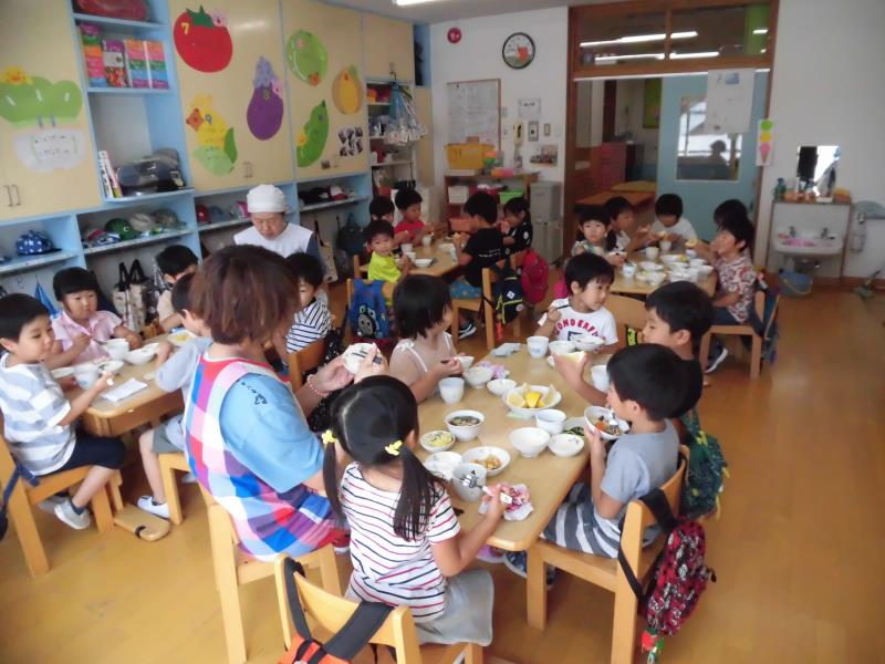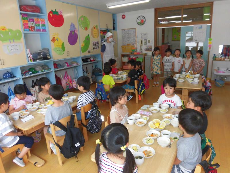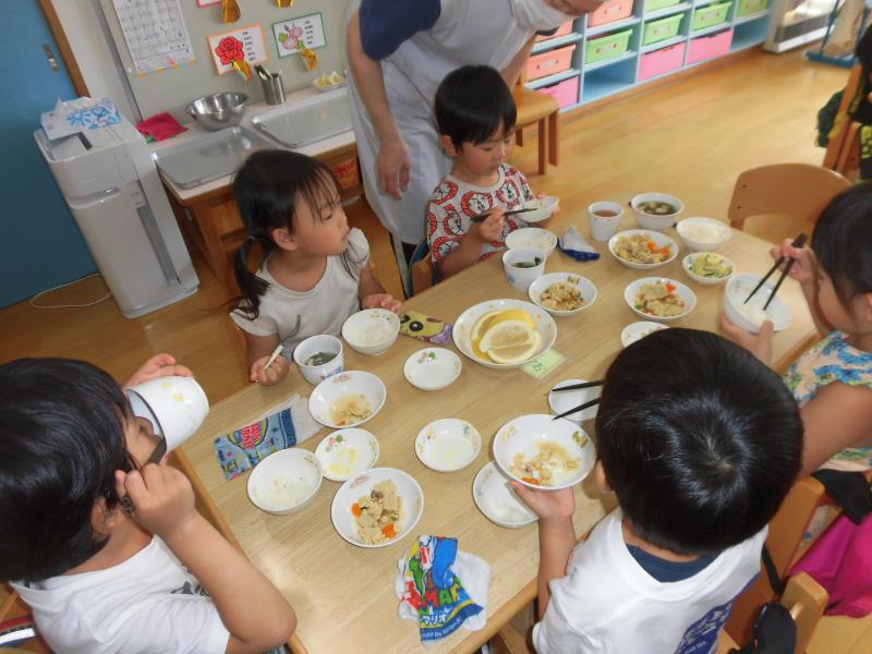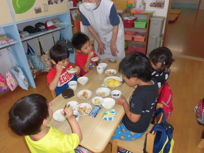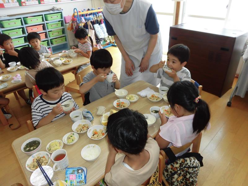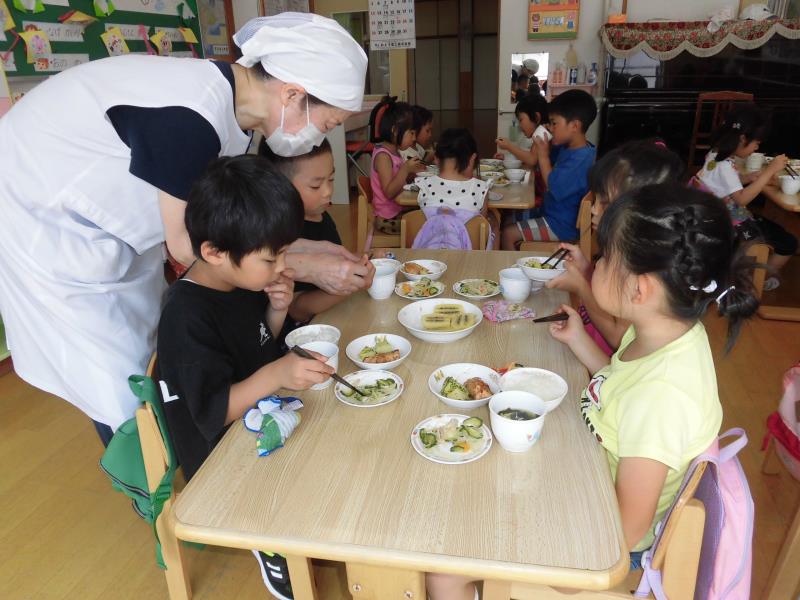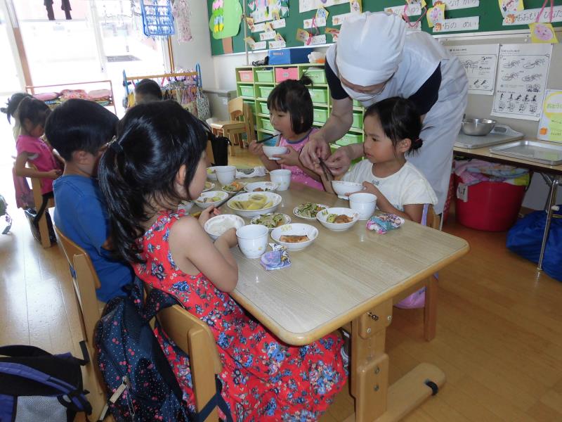 給食先生から食べ物のお話も聞き、いつも以上にモリモリ食べていたすみれさん!