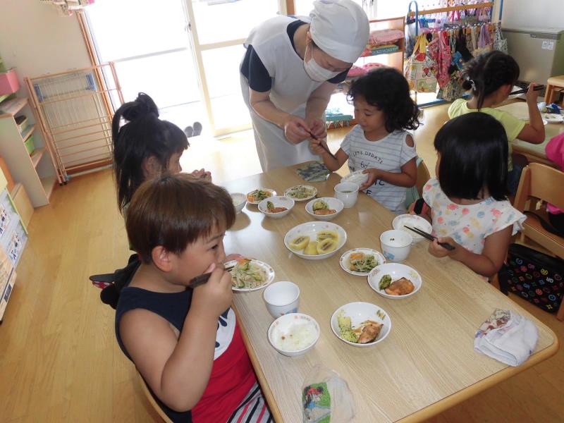 今日はさくらさんのお部屋に給食先生が来てくれました。
