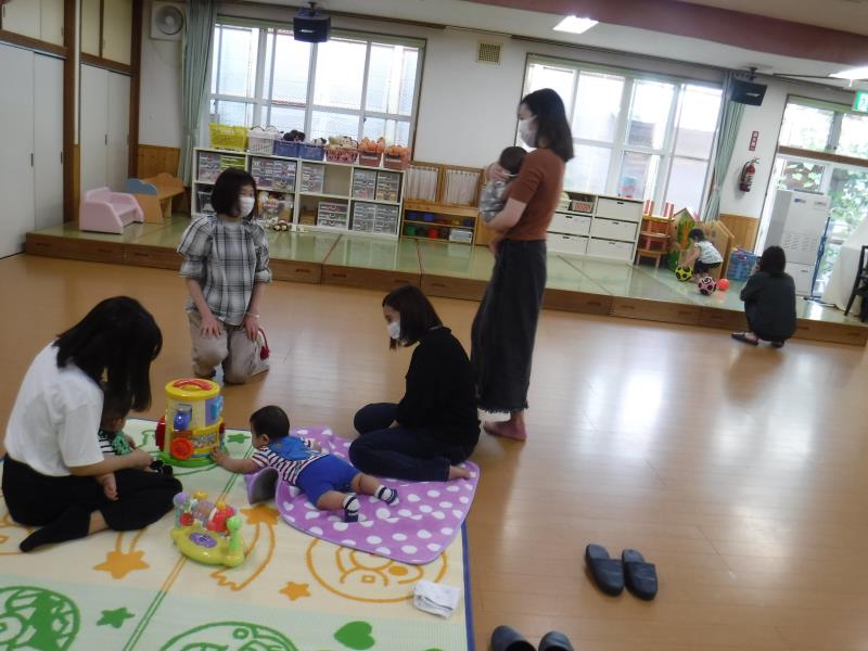 今日は、0歳児のお友達4名と1歳児のお友達1名が遊びに来て下さいました。