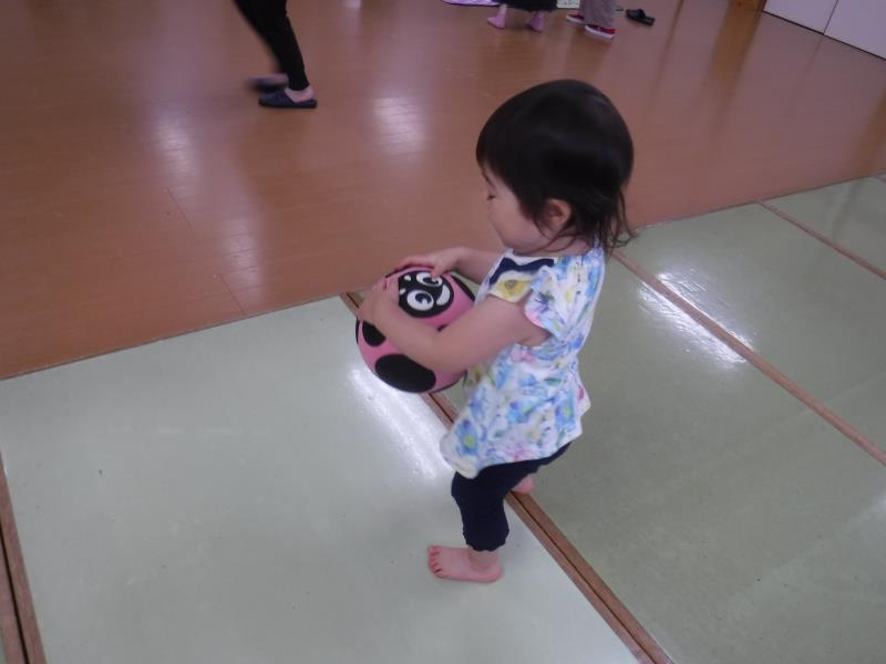 1歳児のお友達はお外でも少し遊び、そのあとは暑さもあったので0歳児のお友達と一緒にお遊戯室でのんびり遊んで過ごしましたよ。