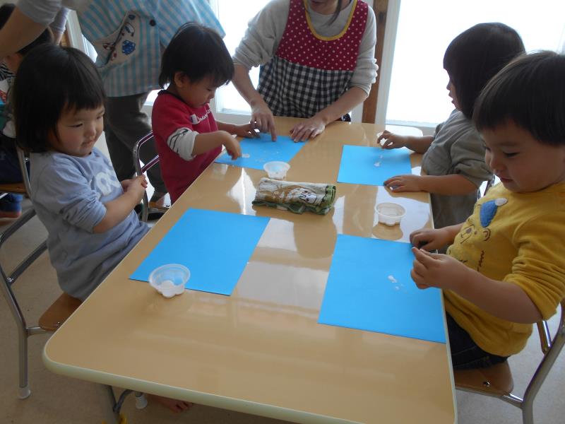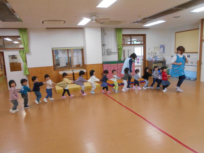 戸惑うお友達もいましたが、先生と一緒にやってみました。