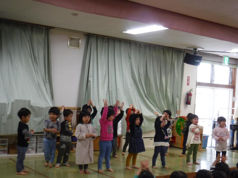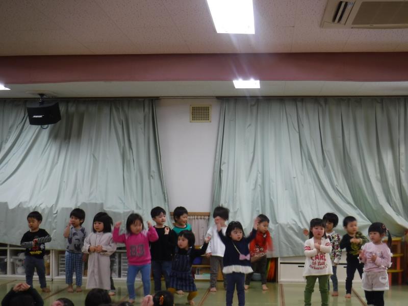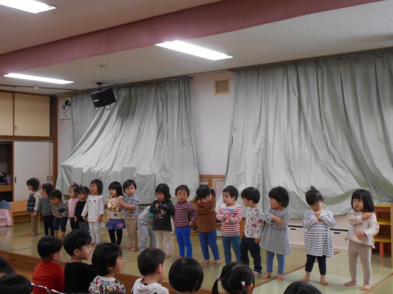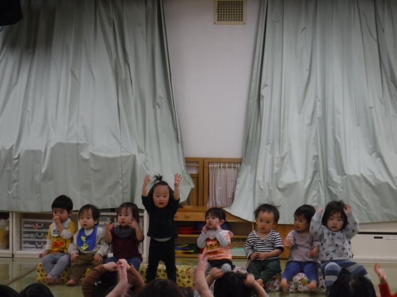 未満児さんは、手遊びや踊り、リズム運動などをそれぞれ発表しました!