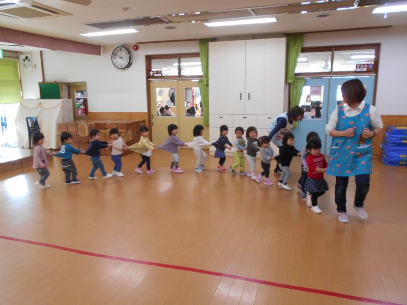 上靴を履いてお遊戯室で遊び、嬉しそうなちゅうりっぷさんでした!