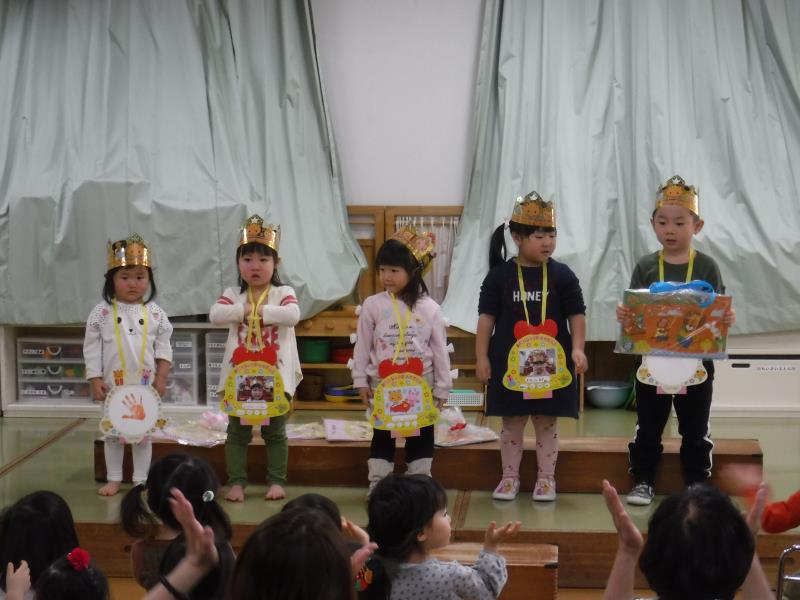上手にできるようになったことをみてもらい、大きいクラスのお友達からたくさんの拍手をもらいましたよ。