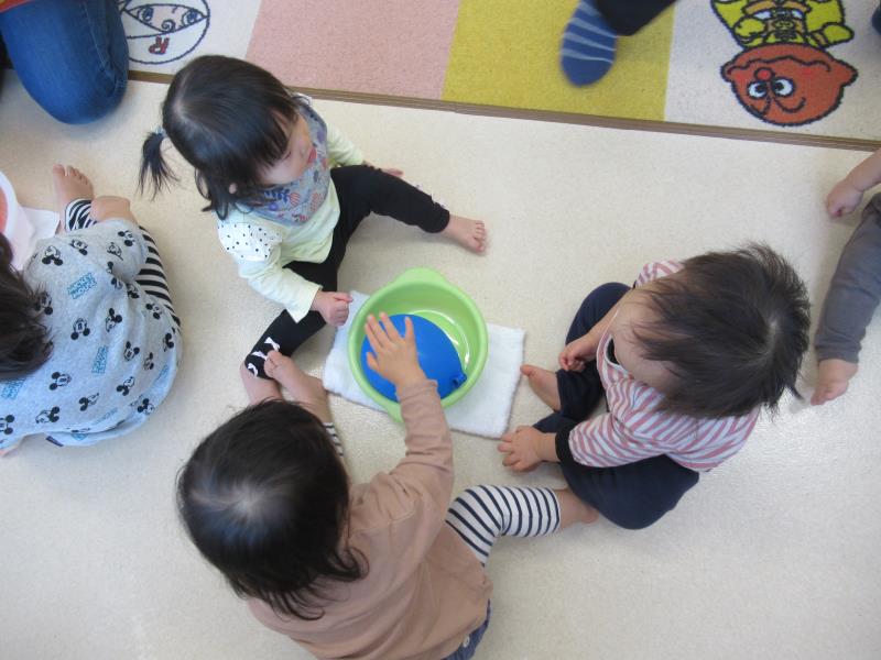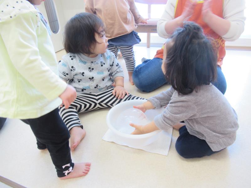 手でペタペタ触ったり足で触ろうとしたり、中には舐めようとするお友達もいたそうです。