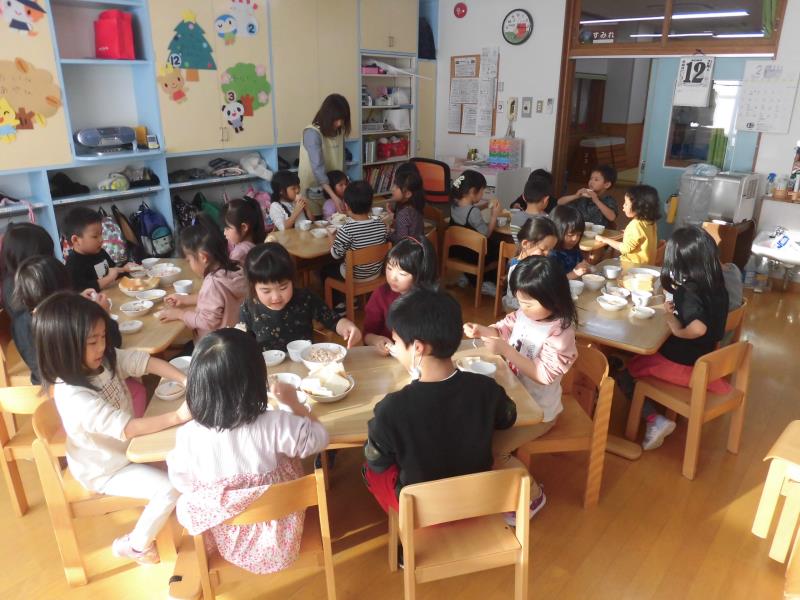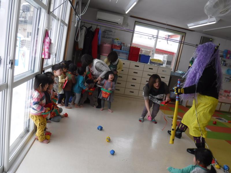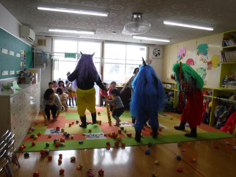 以上児クラスから鬼が去った後、もも組・ちゅうりっぷ組・たんぽぽ組にもそれぞれ鬼がやってきました。