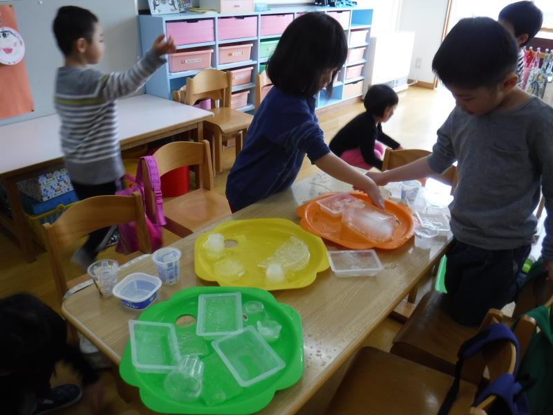 自分達で容器を選び、どんな氷になるか想像しながらワクワク…