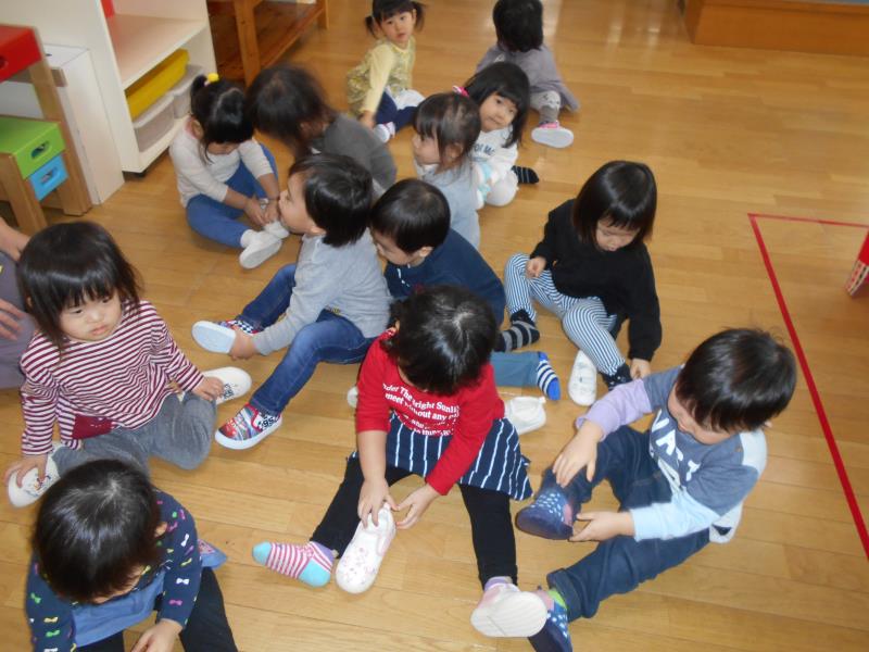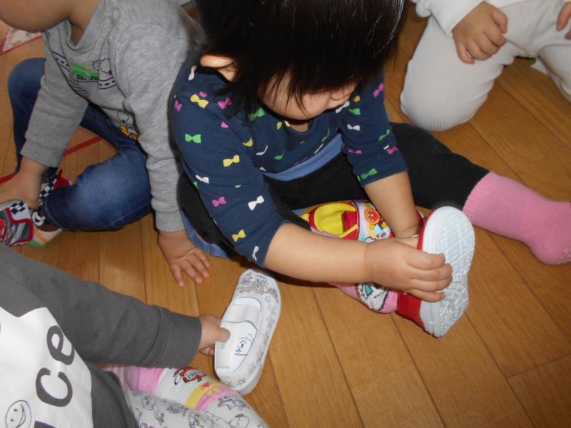 先生と一緒に上靴を履く、脱ぐことを挑戦してみました。
