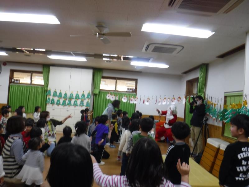最後はサンタさんと一緒に「ジングルベル」の踊りをおどって、サンタさんとさようなら…しようと思ったら、持ってきた大事な白い袋を忘れていてお茶目なサンタさんでした(笑)
