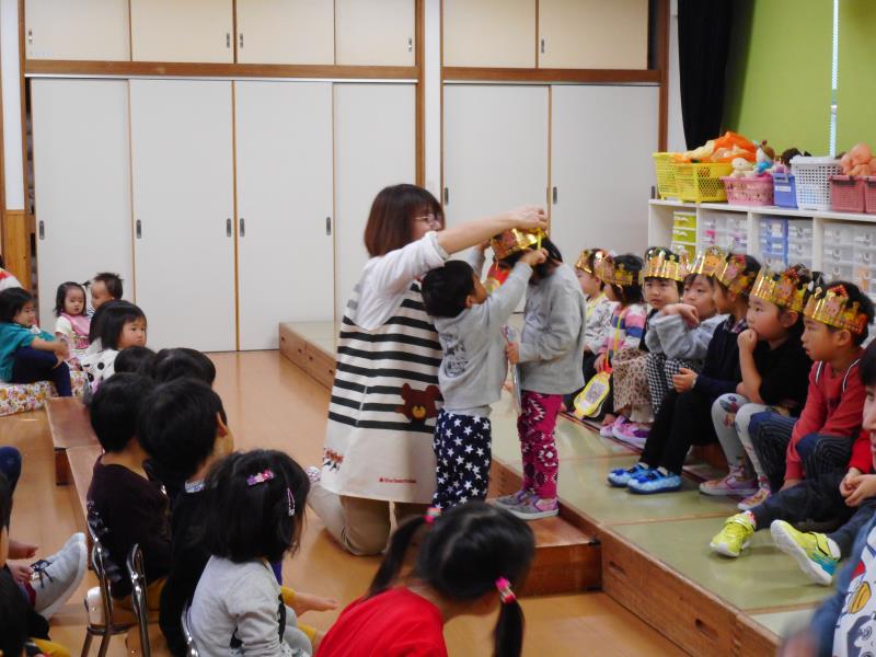 今日は9名のお友達がお誕生会でステージにあがりました。
