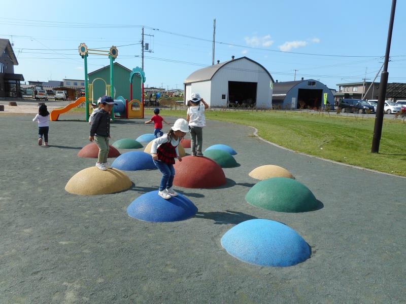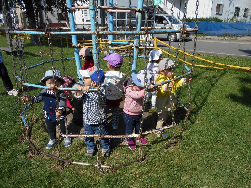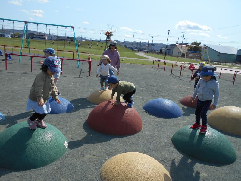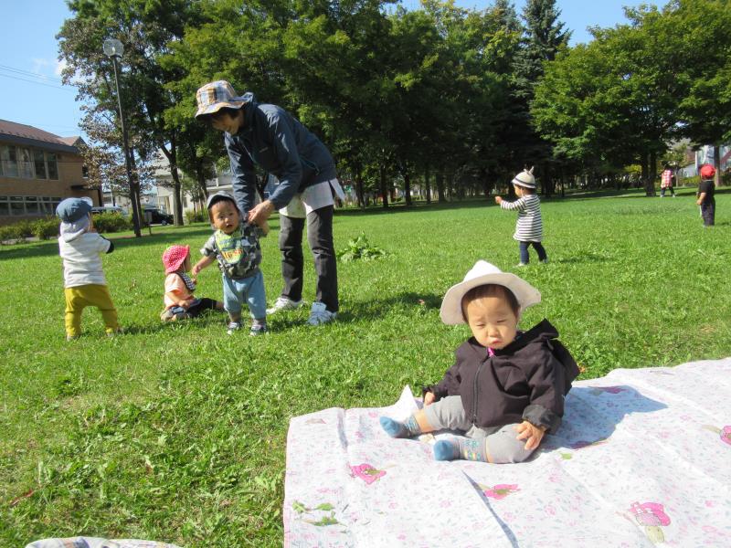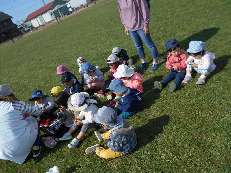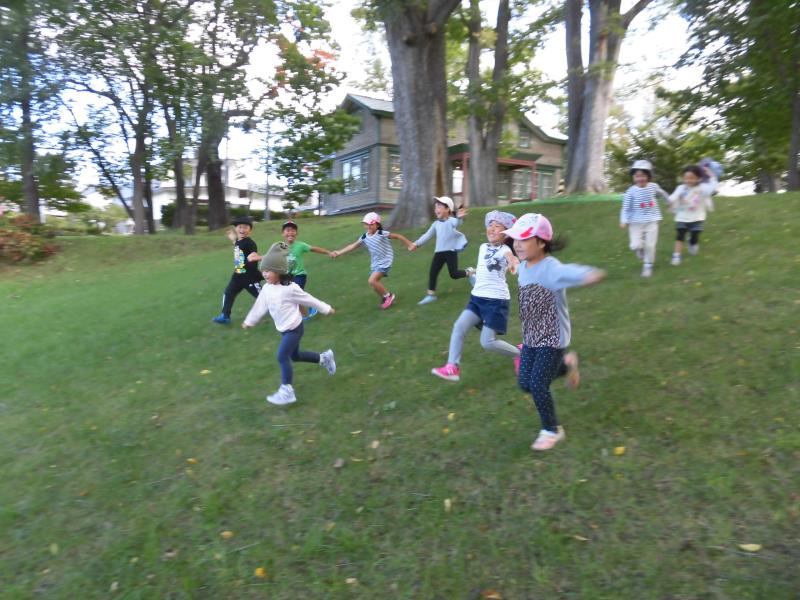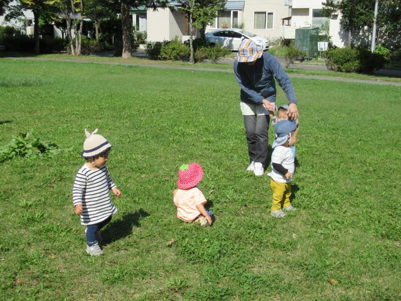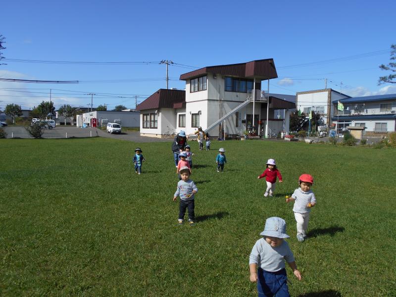 遊具で遊んだり、坂からコロコロ転がったり、トンボを追いかけたり…体を動かして遊んだ後は、公園でお弁当をいただきました!
