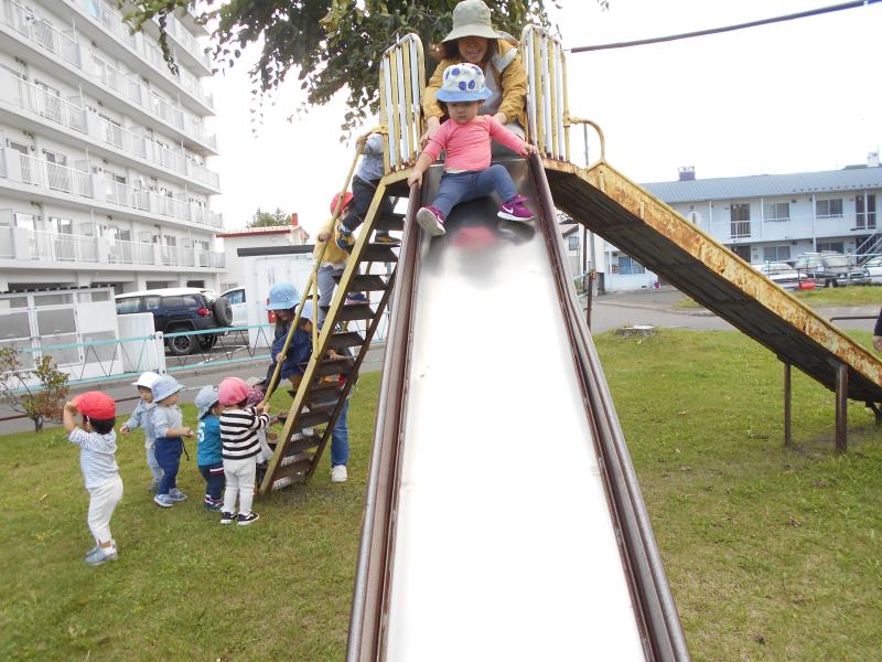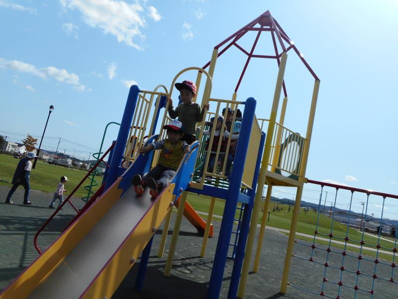 公園でおやつを食べた後、遊具で遊んだりよーいドンして走ったりと遊びましたよ。