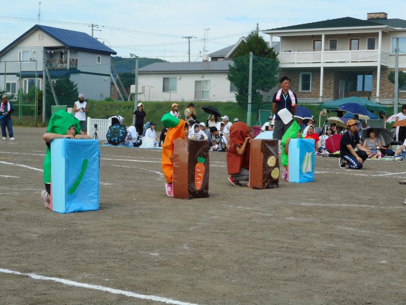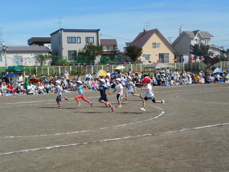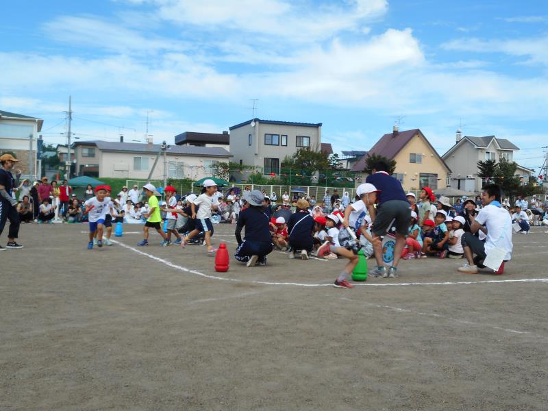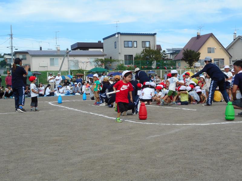かけっこや遊戯、リレー、個人競技をしましたよ。