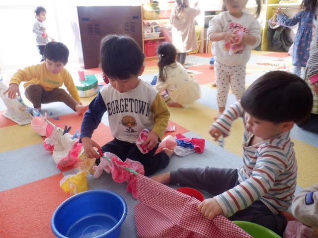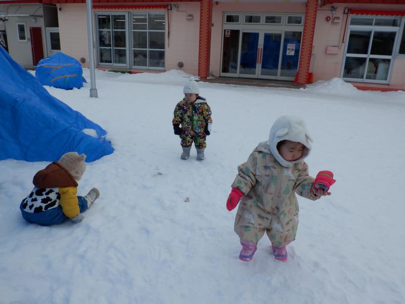 ちゅうりっぷさんは 園庭に出ましたよ。