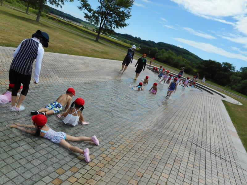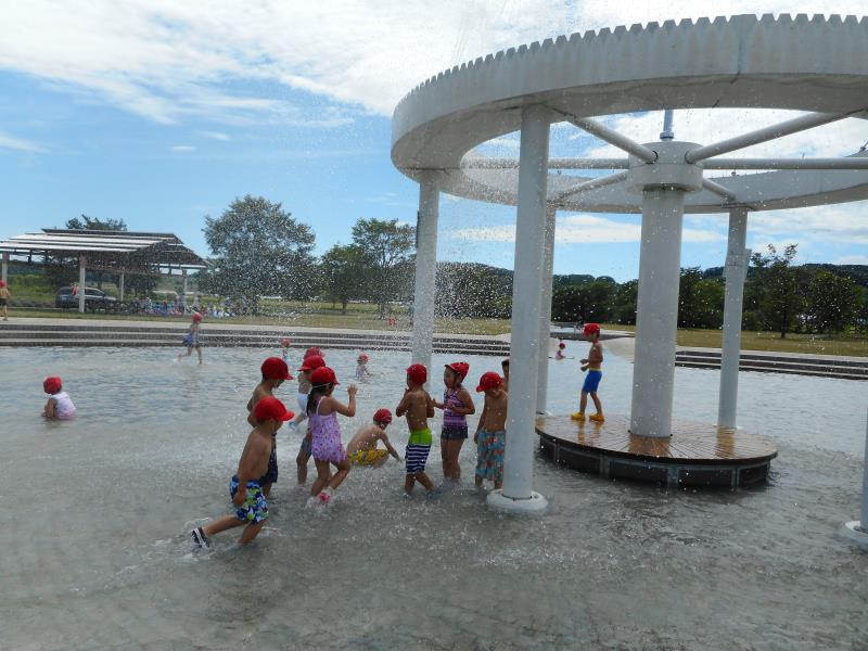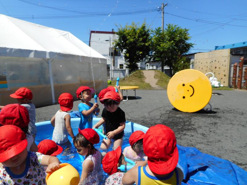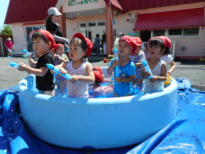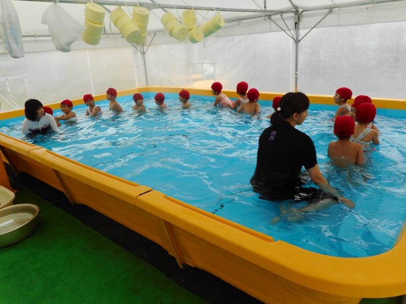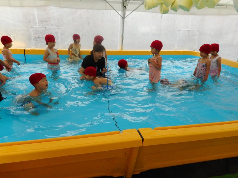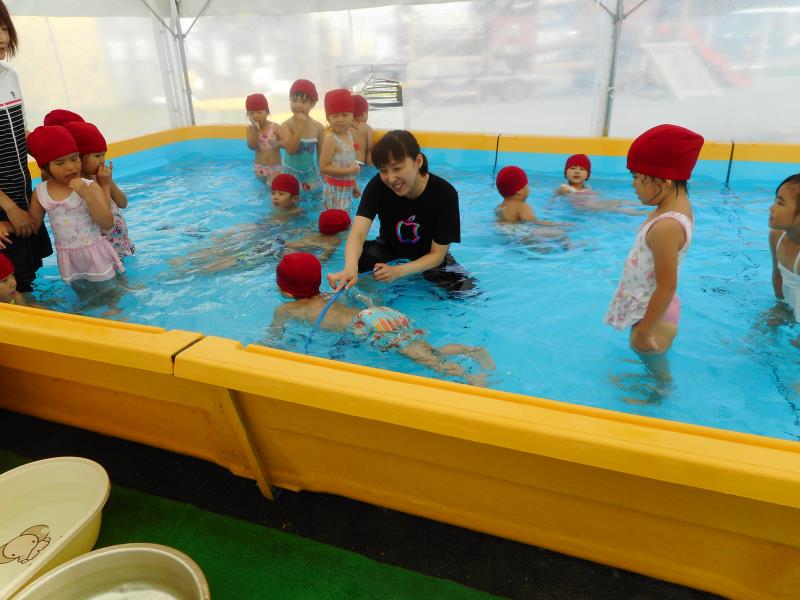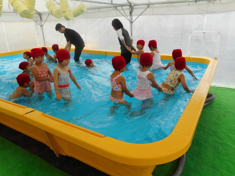 お友達と楽しく水にふれて遊び、全員が顔をつけられるようになったようですよ!