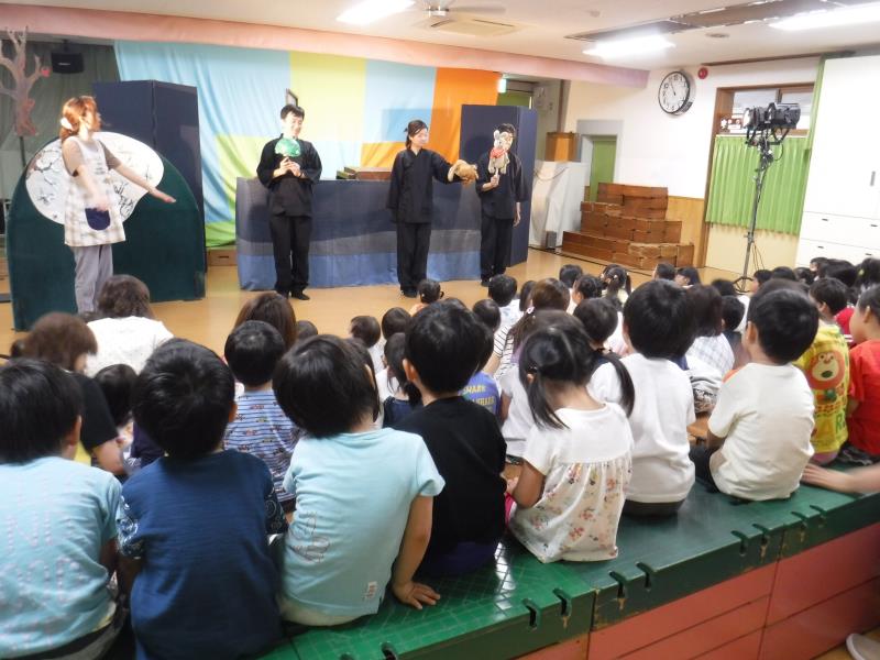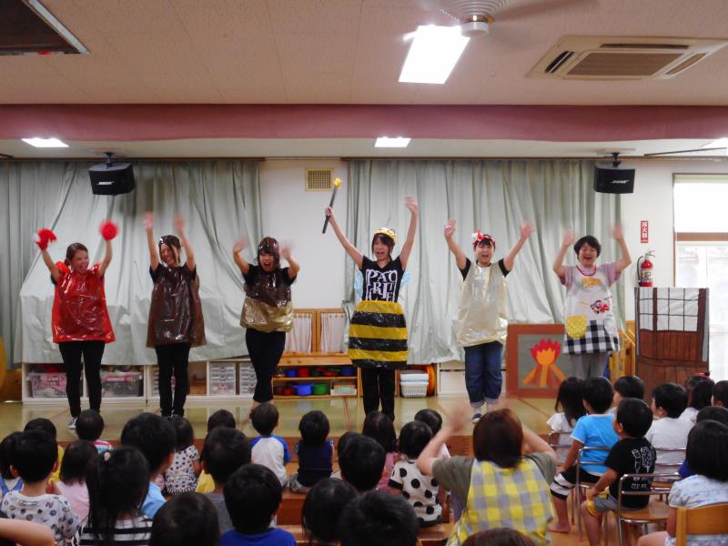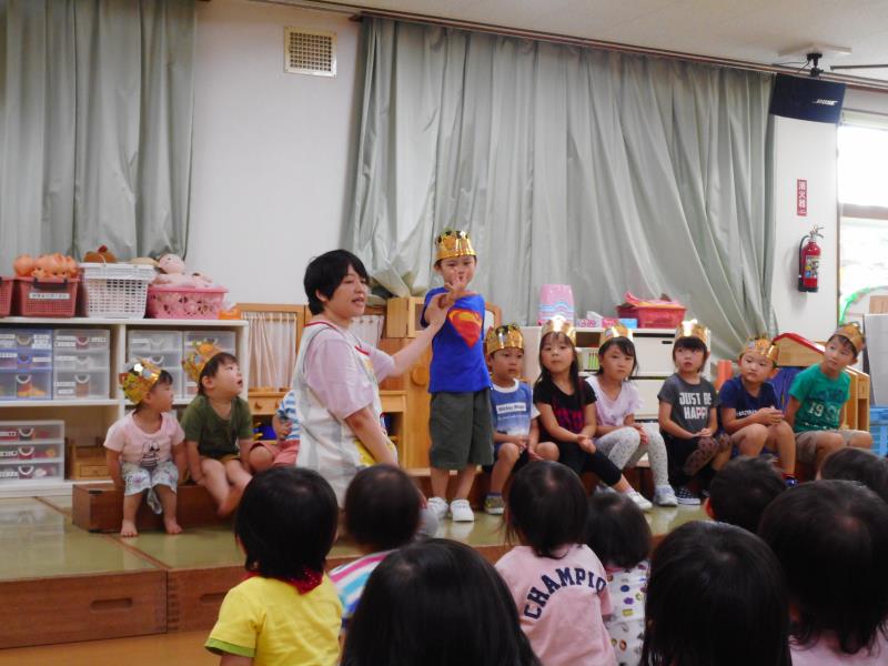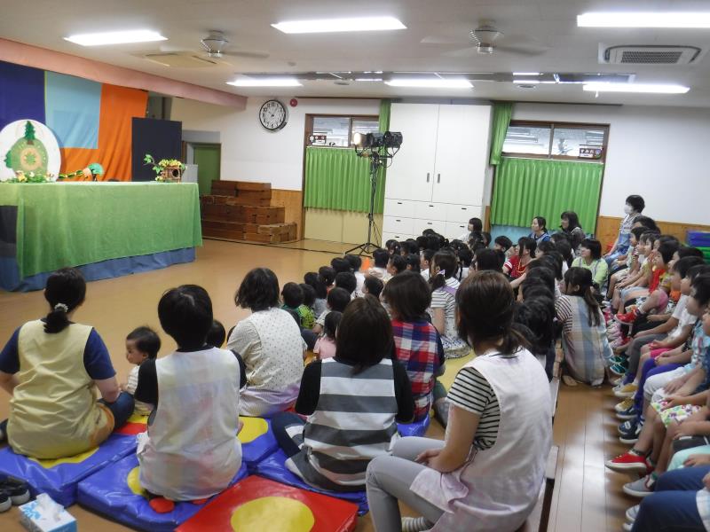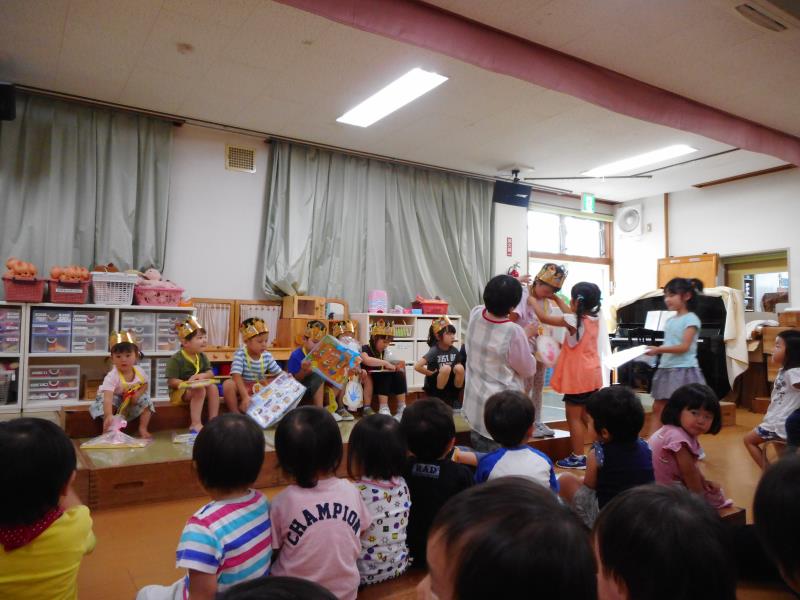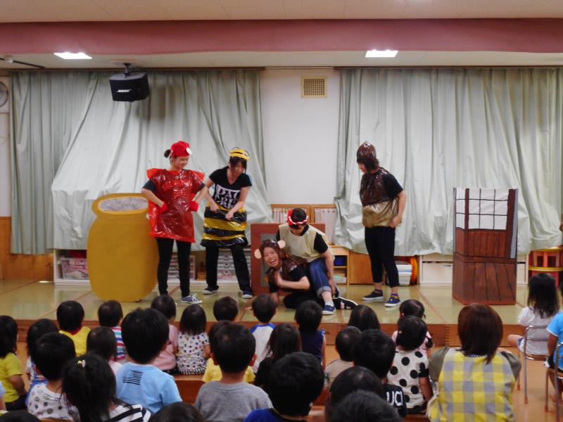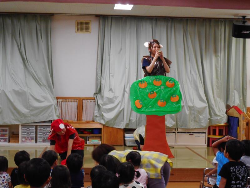 誕生会の出し物は先生による劇、「さるかに合戦」でした。