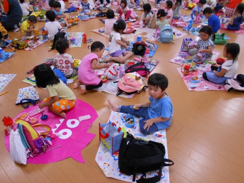 お弁当は園に戻ってお遊戯室でいただきましたよ。