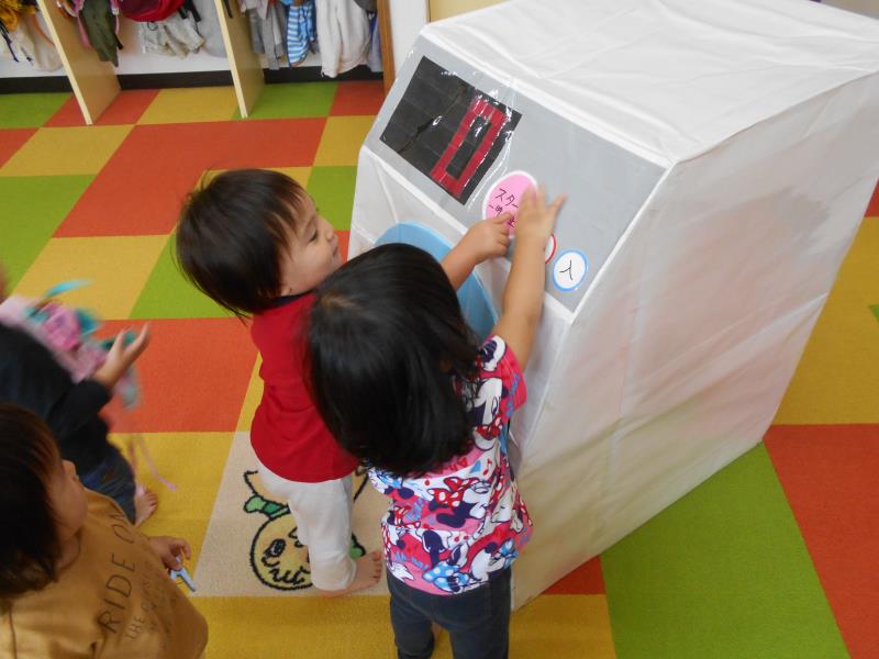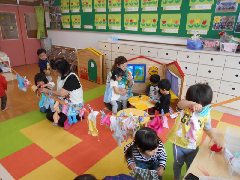 ちゅうりっぷさんはお洗濯ごっこをしていました。