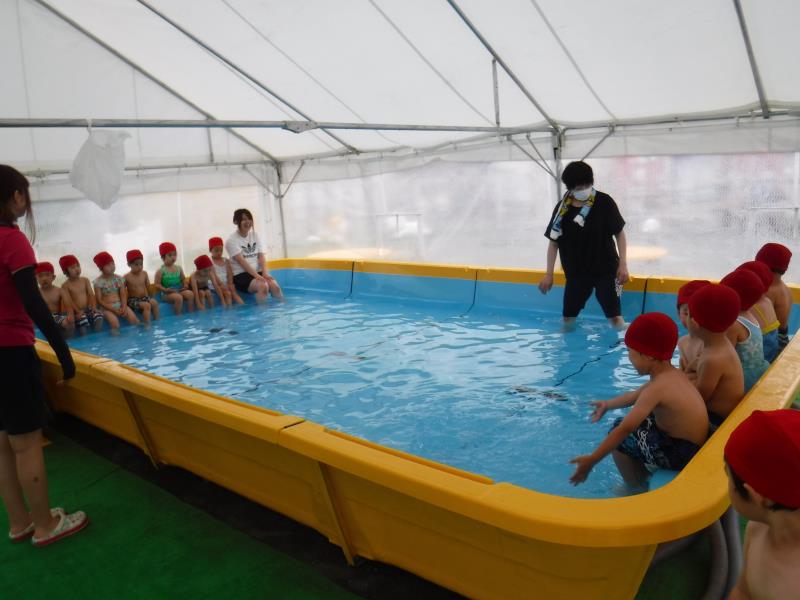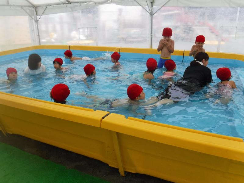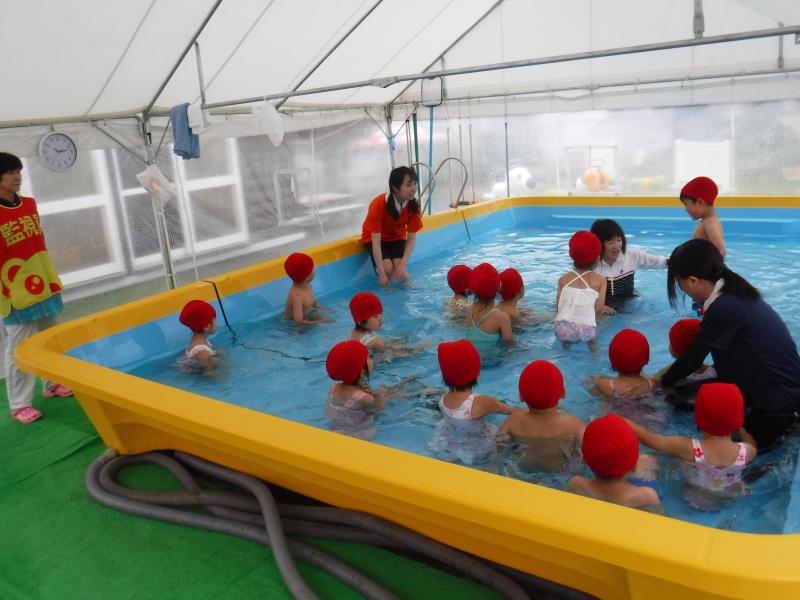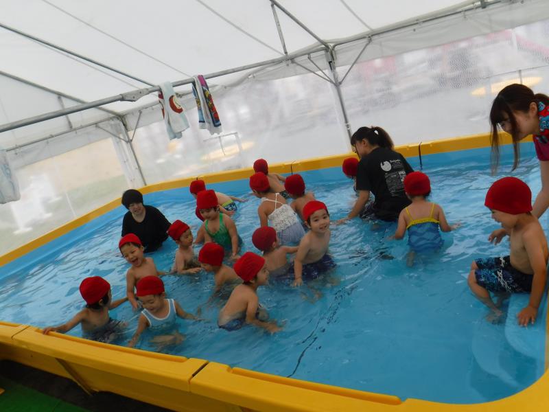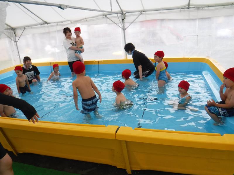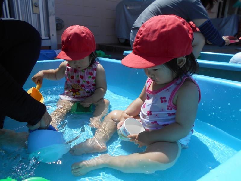 お水を温かくして、さくらさん・すみれさん・ゆりさんがプールで遊びました。