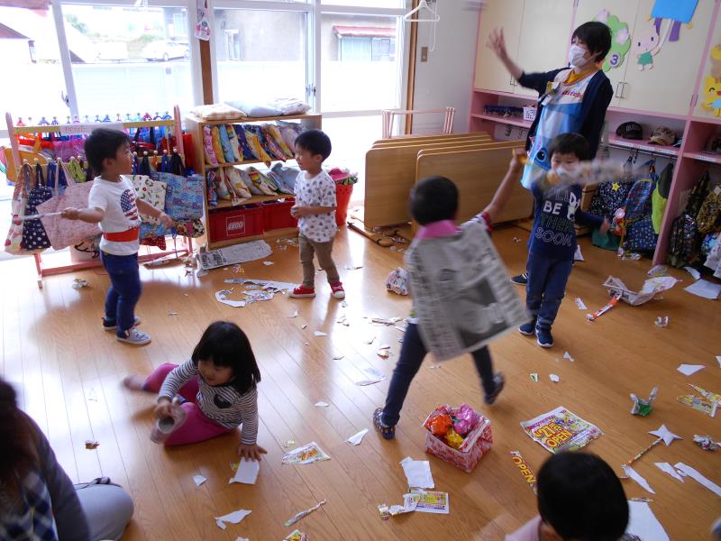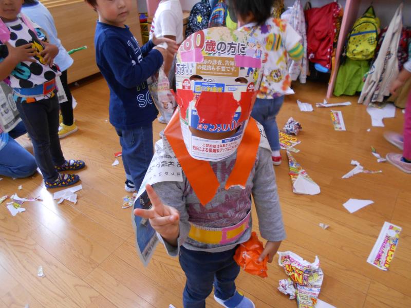 魔女の帽子を作ってなりきってみたり、アンパンマンに変身したお友達も!