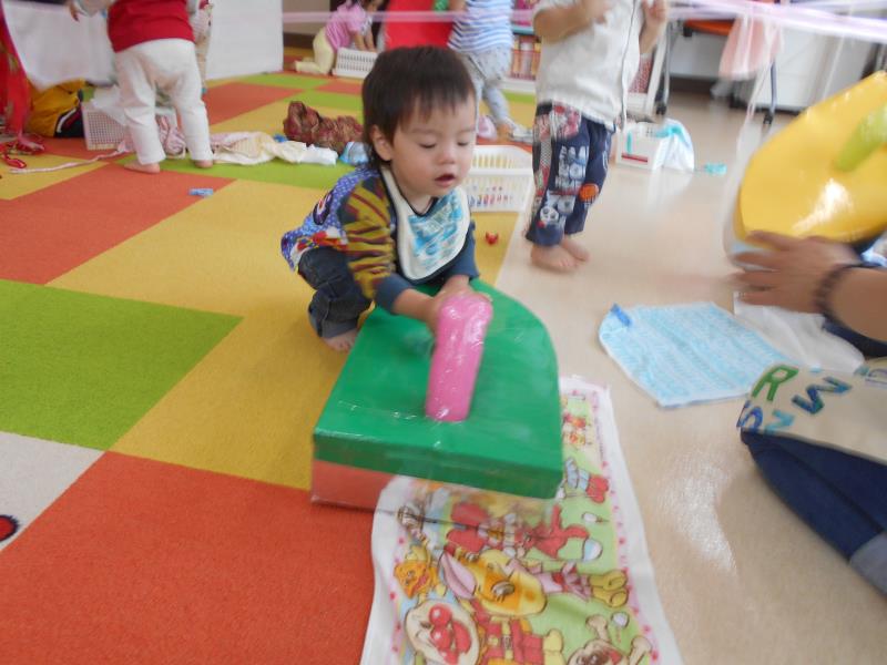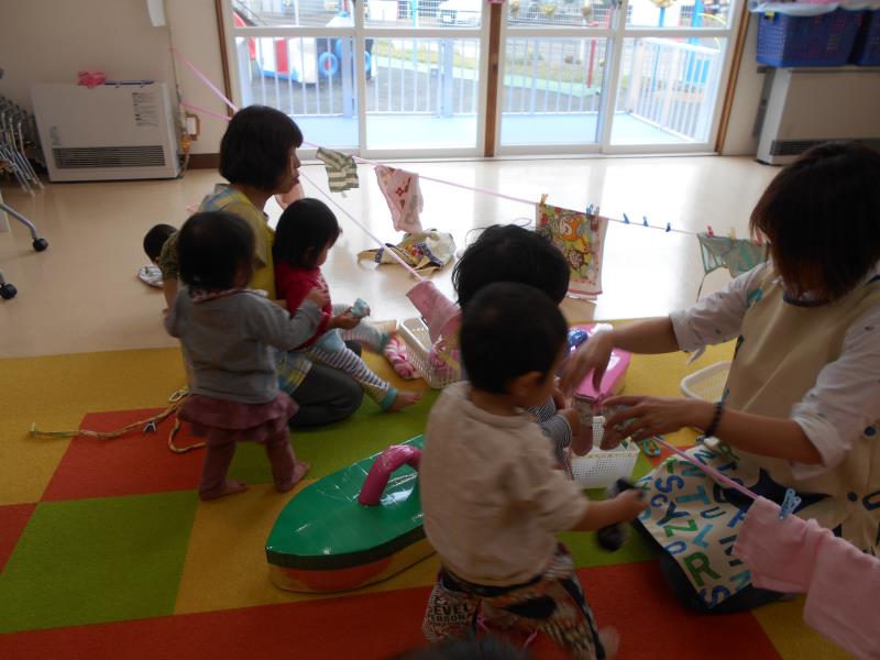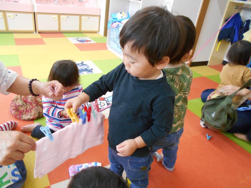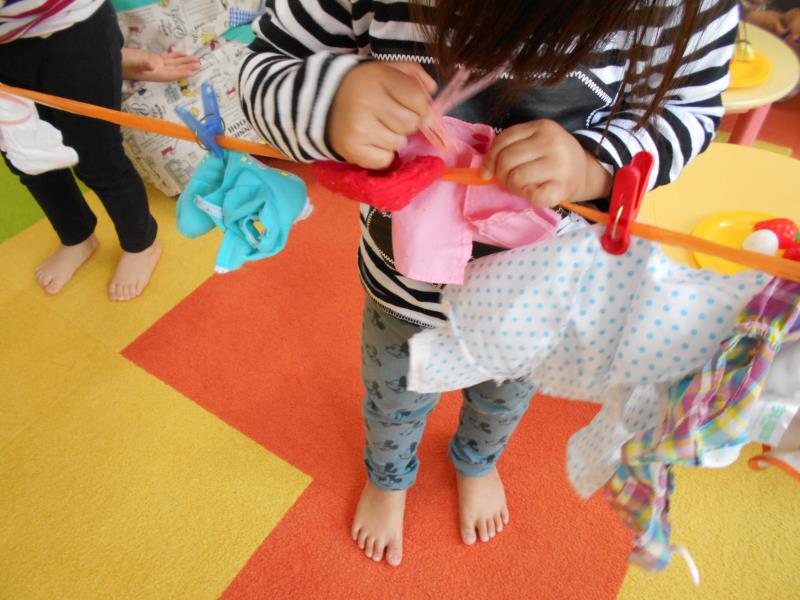 お人形のお洋服を干したり、指先を使って遊んでいましたよ!