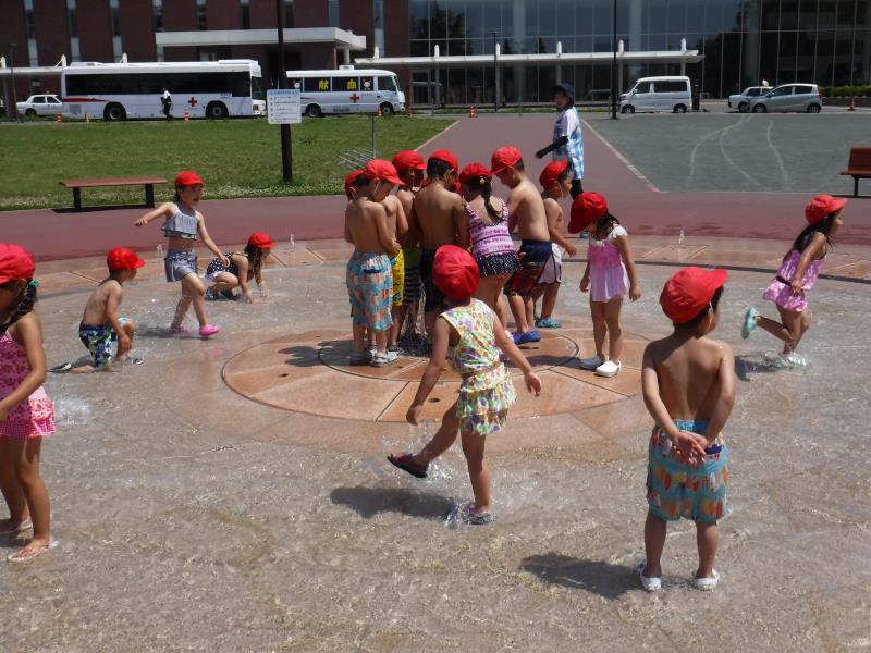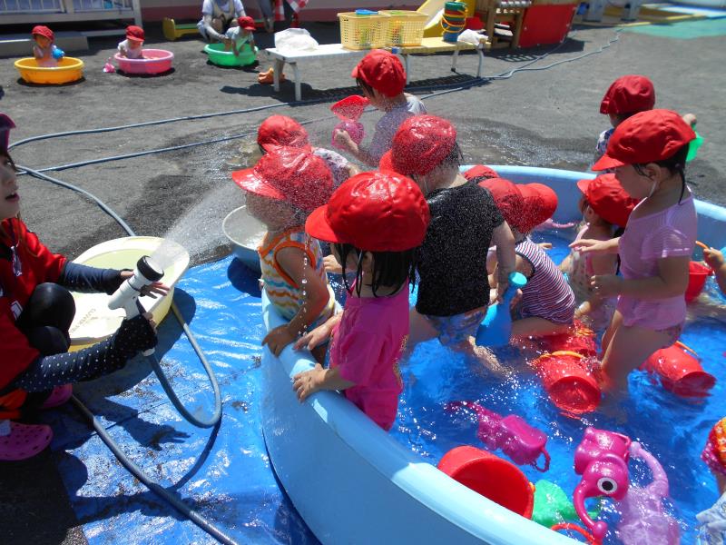 先生やお友達とお水をかけ合ったり、大喜びで楽しんでいました♪